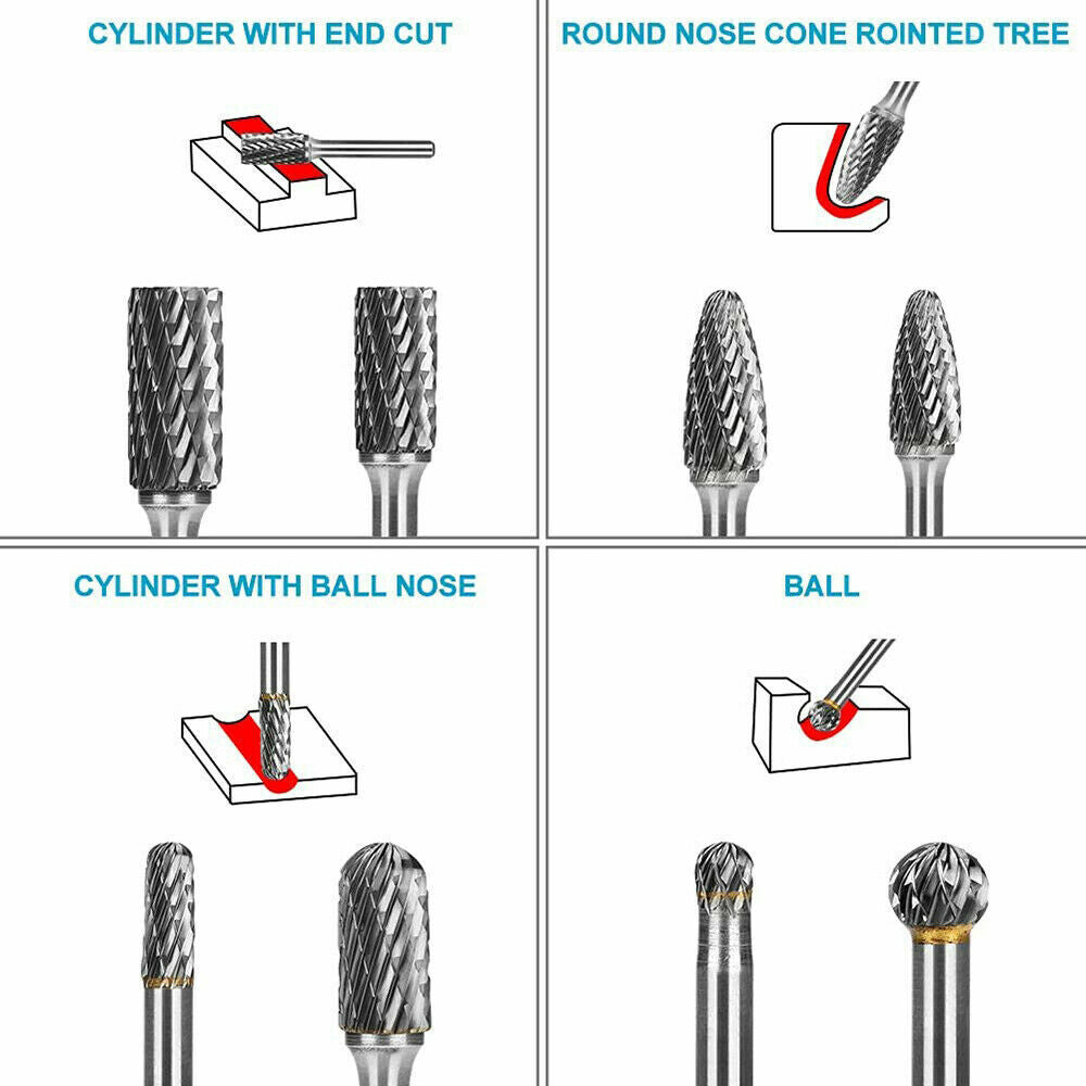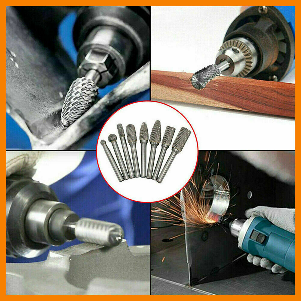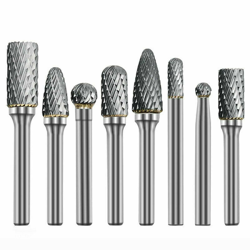 1/4" 6mm Shank Tungsten Carbide Rotary Burr Bur Die Grinder Carving Bits 8Pcs