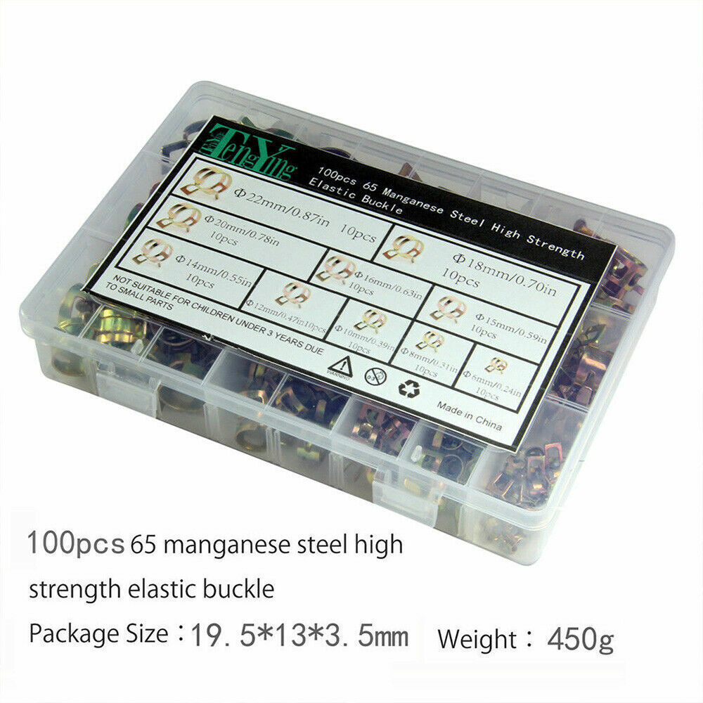 100pcs Steel Spring Clip Hose Clamps 6-22mm Adjustable Range Worm Gear Stainless