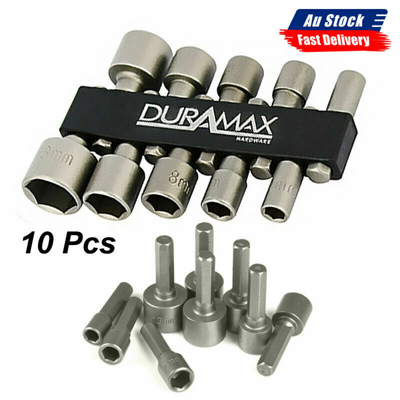 10x Power Nut Driver Drill Bit Set 4-13mm Steel Bit Set 1/4" hex shank AU STOCK