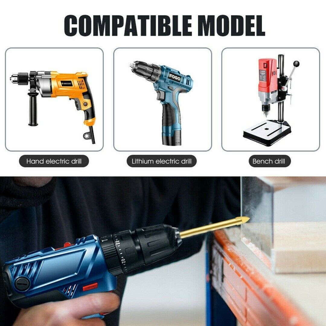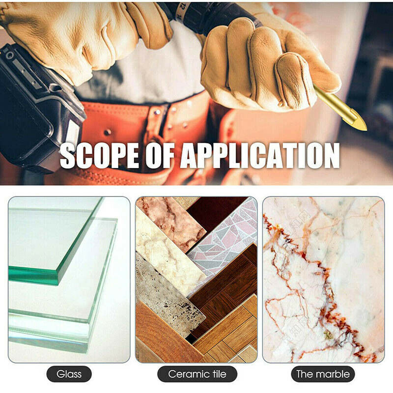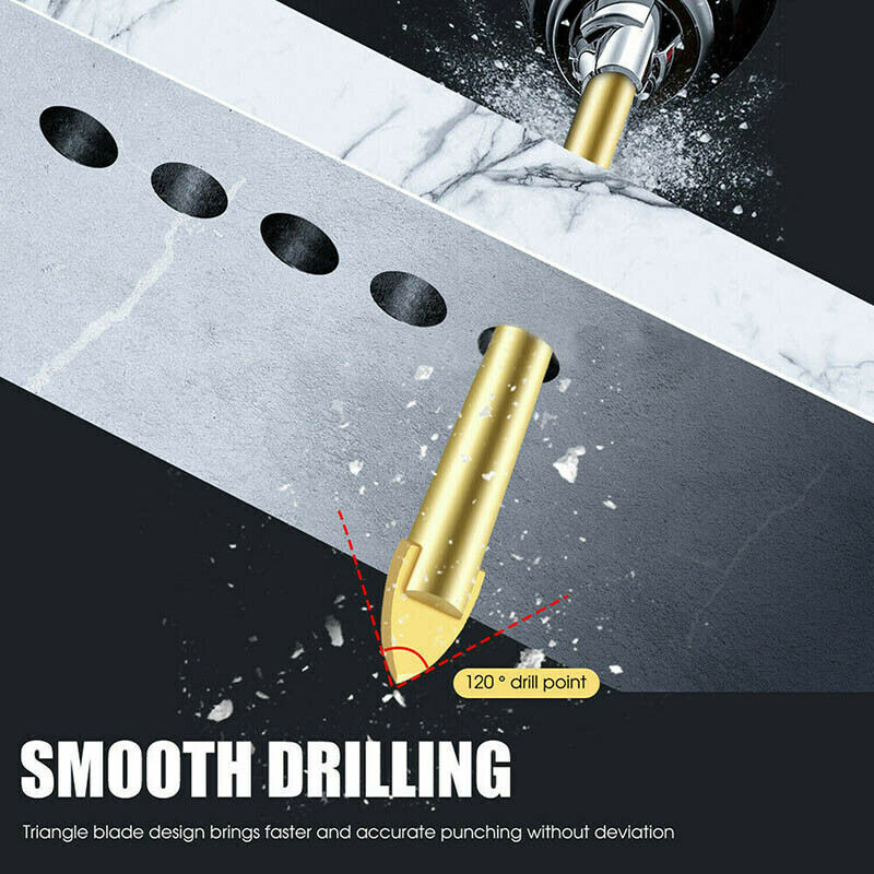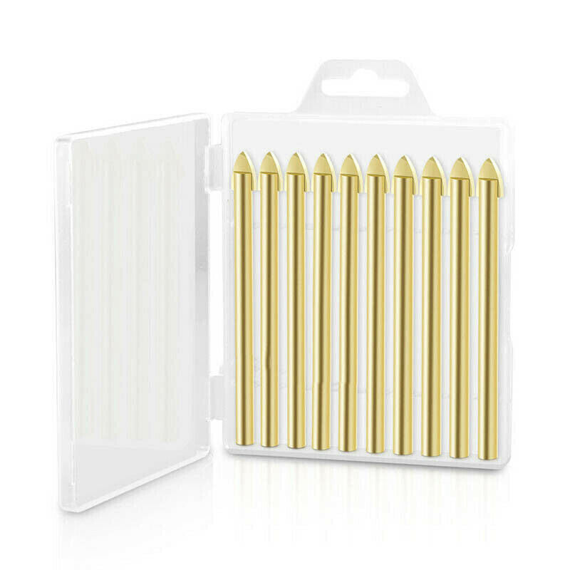 10x Titanium Ceramic Tile Glass Drill Bit Tungsten Carbide Cross Spear Head 6mm