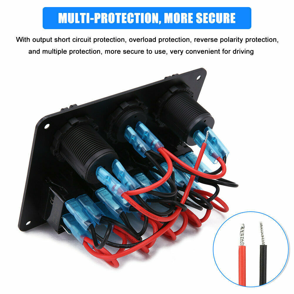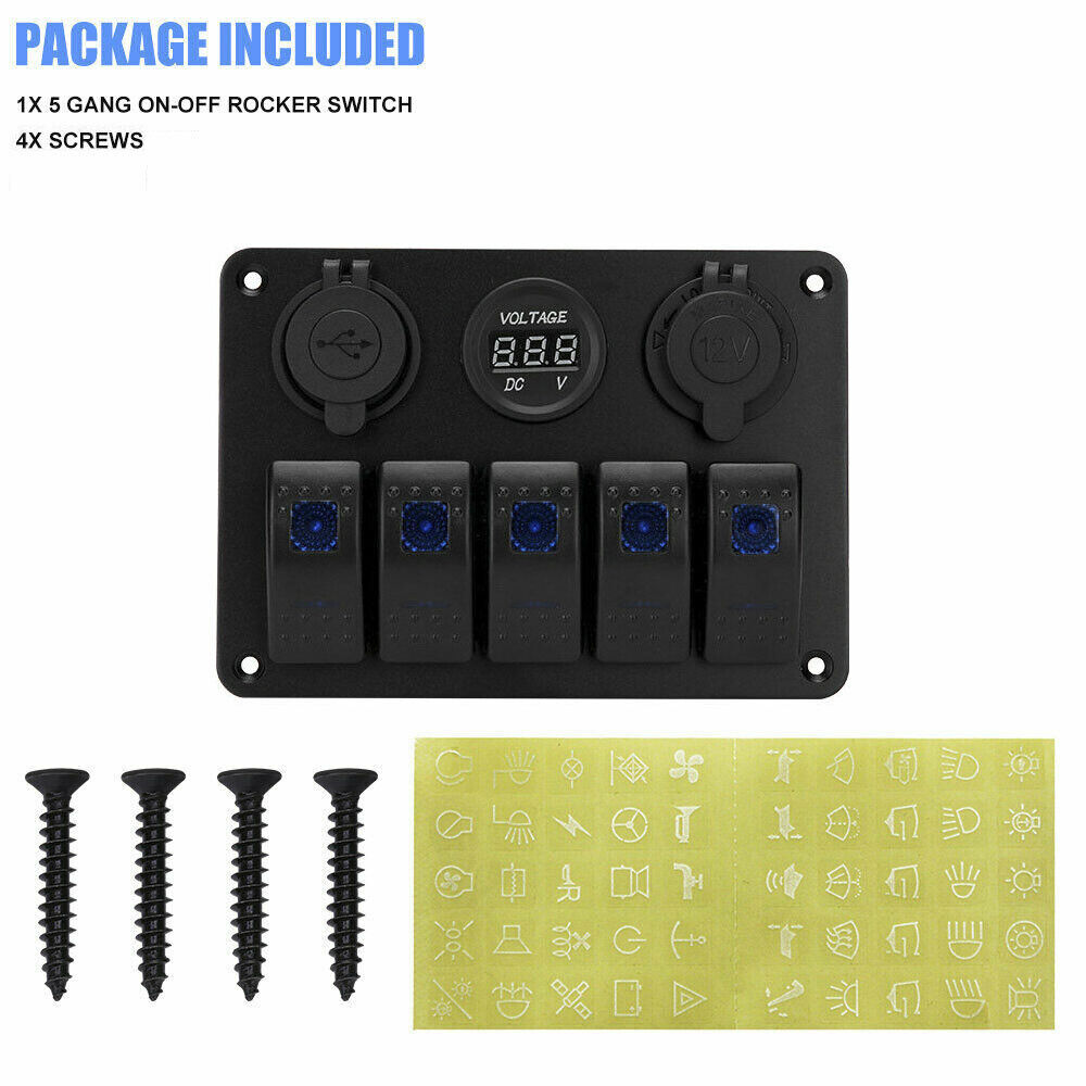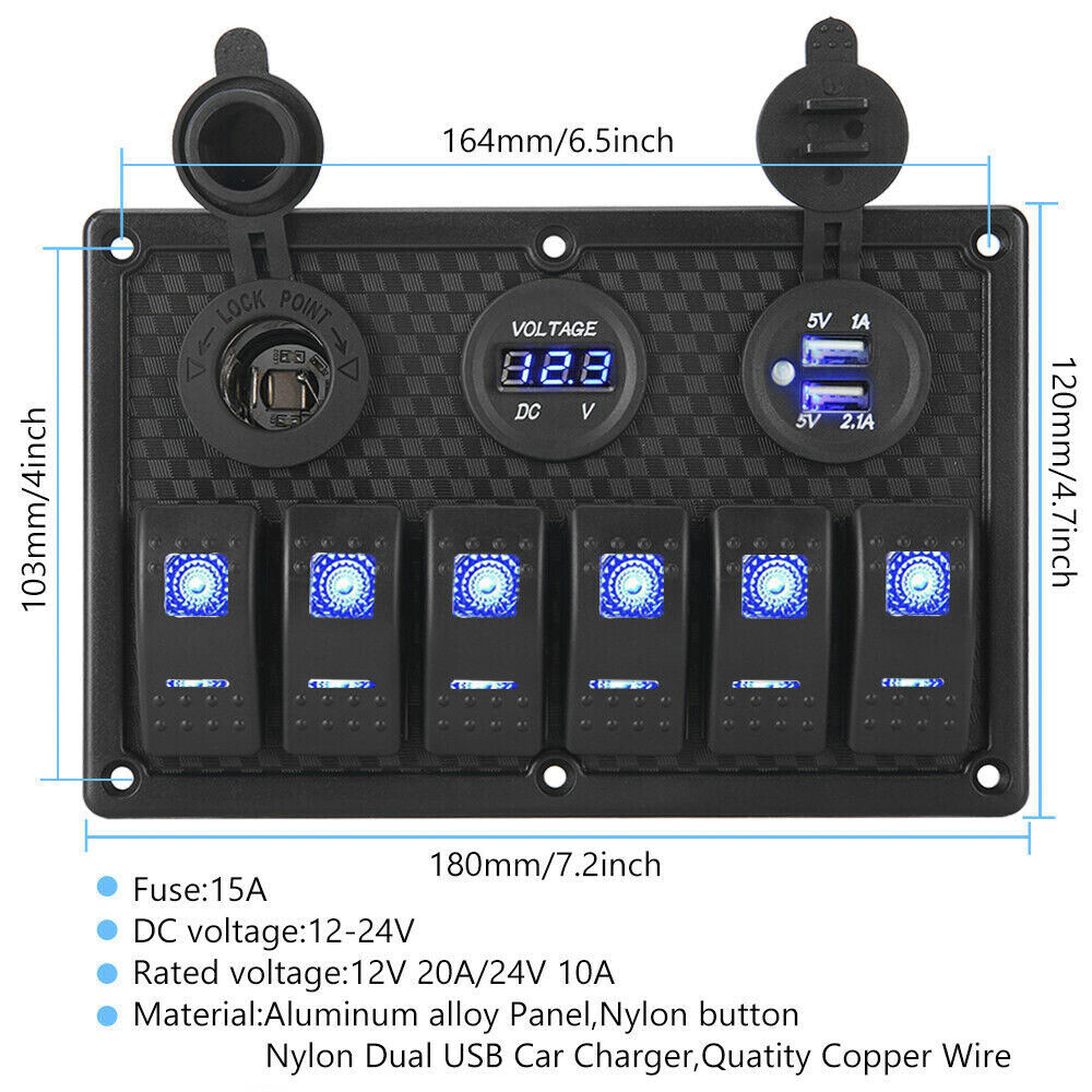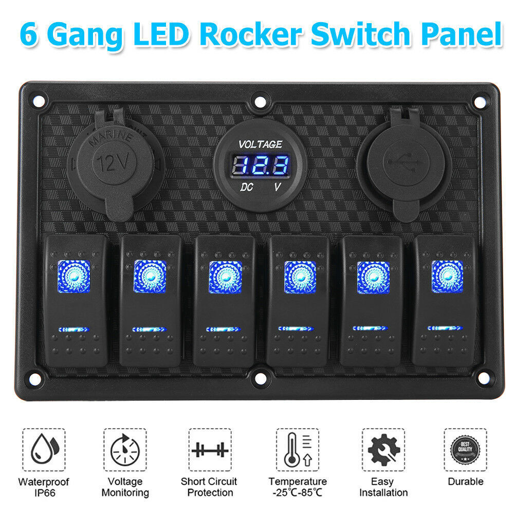 6SWITCHPANEL 6 Gang Rocker Switch Panel with Digital Voltmeter+12V power Socket +Double USB Power Charger Adapter Waterproof...