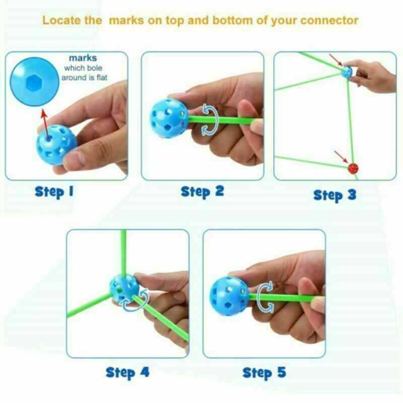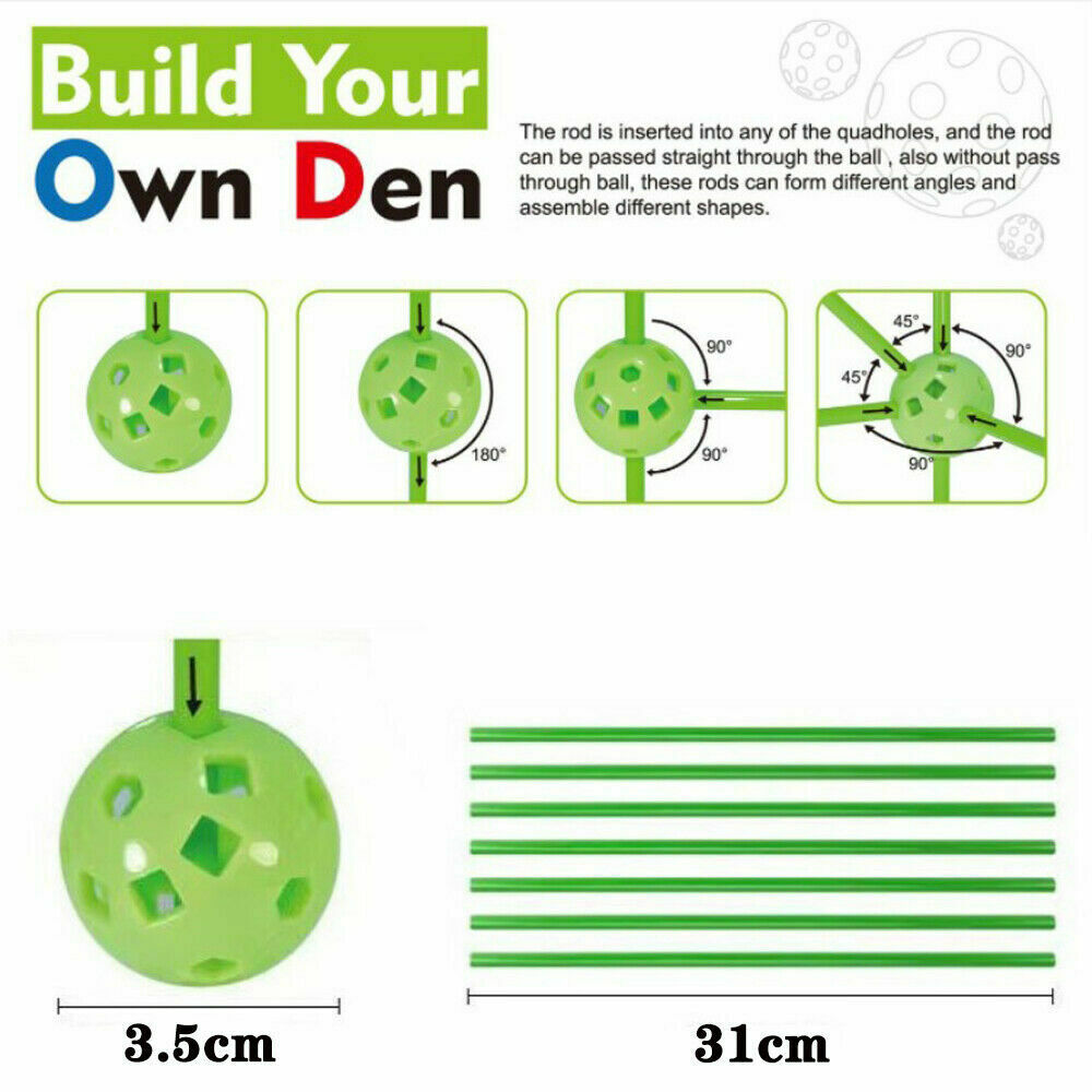Description: Building Fort Building Kit: includes 102 Tent support(12.2" long), 72 multi-color fixed balls (1.38" diameter),1×blue tent...