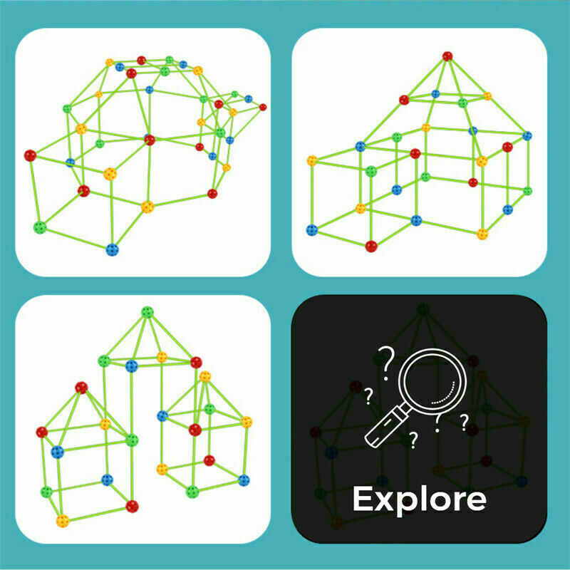 Kids Construction Fort Building Kit 175pcs Castles 3D Play House Tent Toy Gift