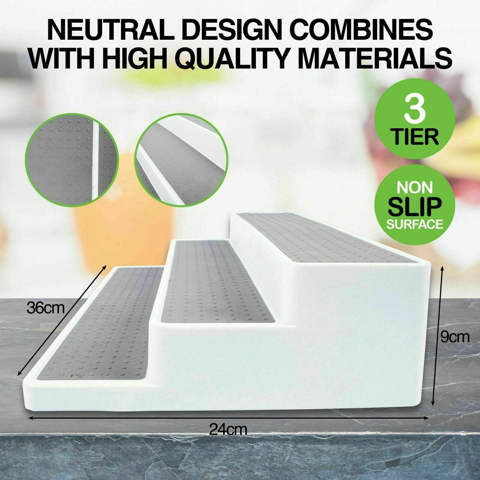 3 Tier Home Master Organiser Non-Slip Storage Kitchen Pantry Tabletops 36cm