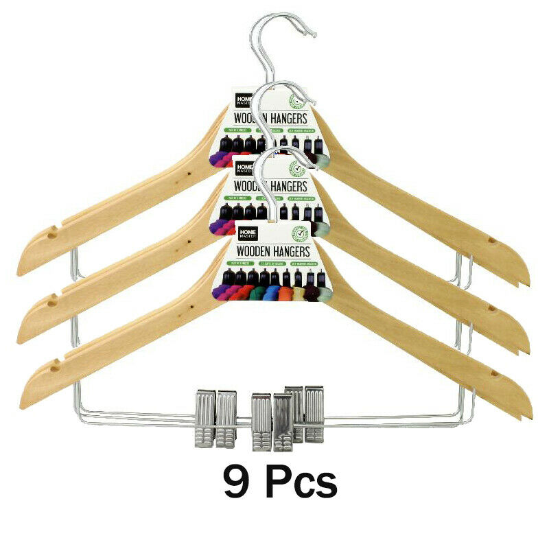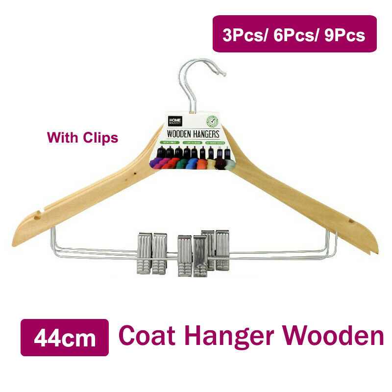 Wooden Clothes Hangers Coat Pant Suit Coat hangers Rack W/Clips