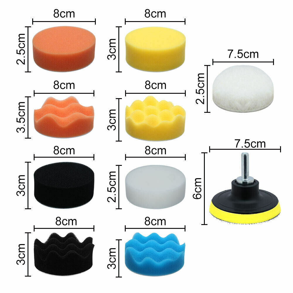 22pcs 3" Buffing Waxing Polishing Sponge Pads Kit Set For Car Polisher Drill