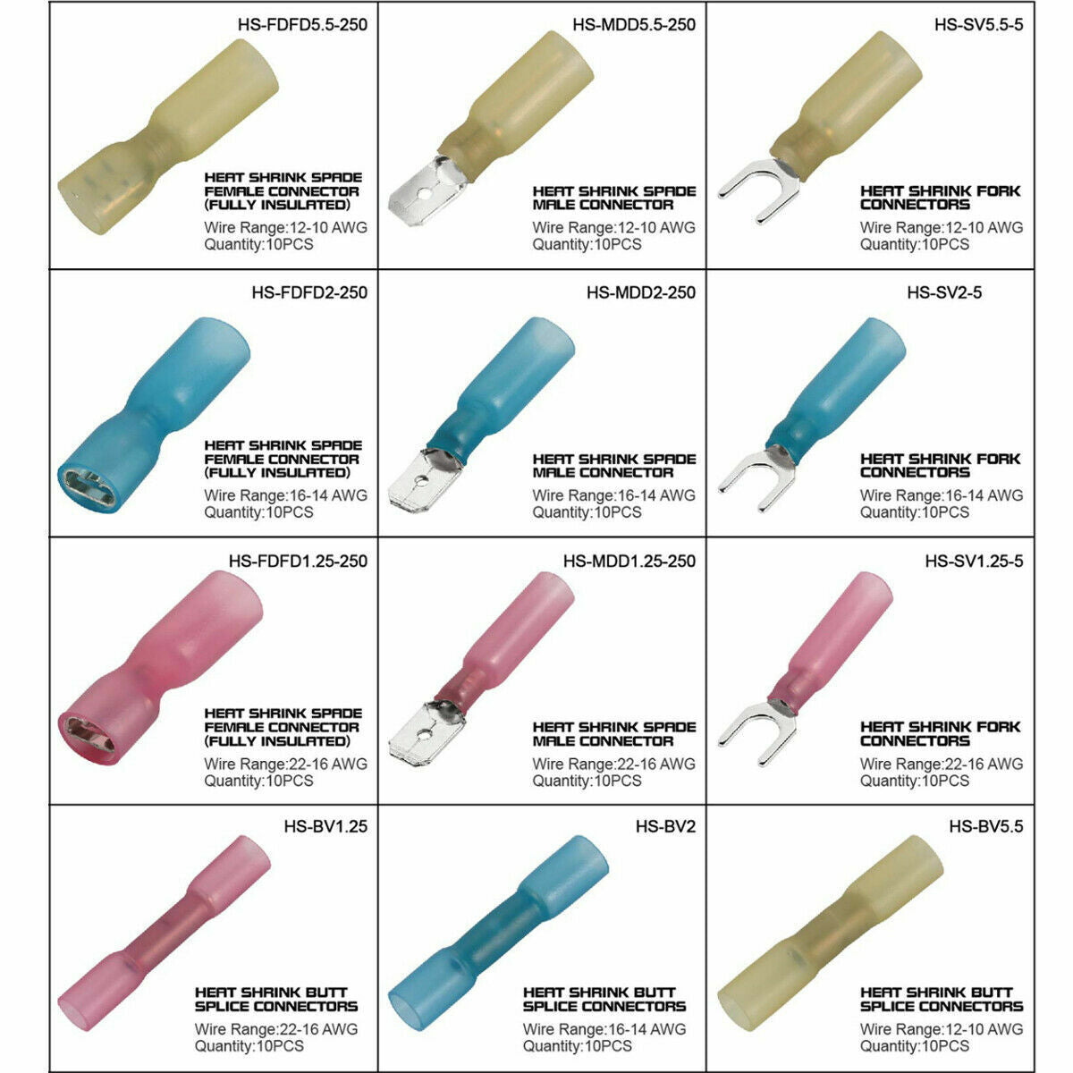 240PCS Heat Shrink Wire Connectors Electrical Crimp Marine Automotive Terminals
