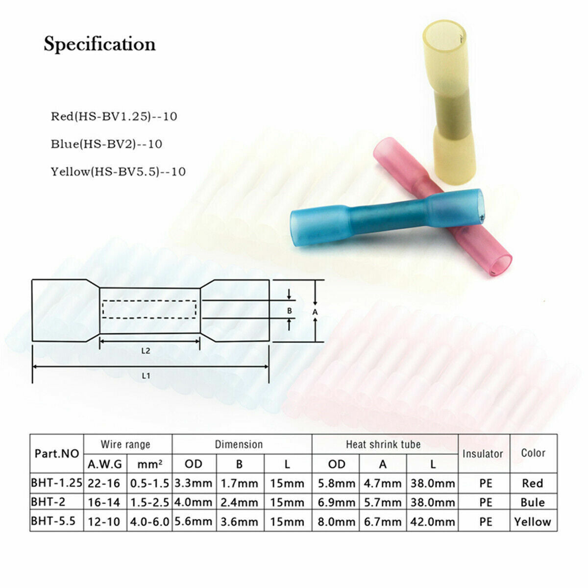 240WIRETERMINAL Specification: Quantity: 240PCS Material: PE+Copper Color: Red, Blue, Yellow Type: Heat Shrink Connectors Feature: Made with...