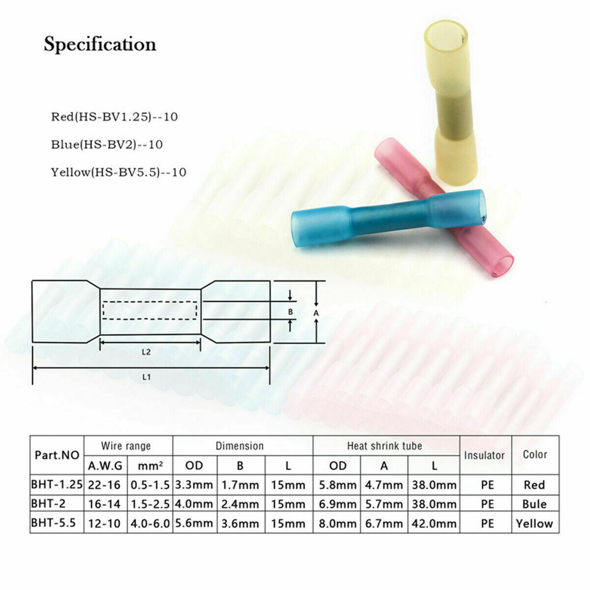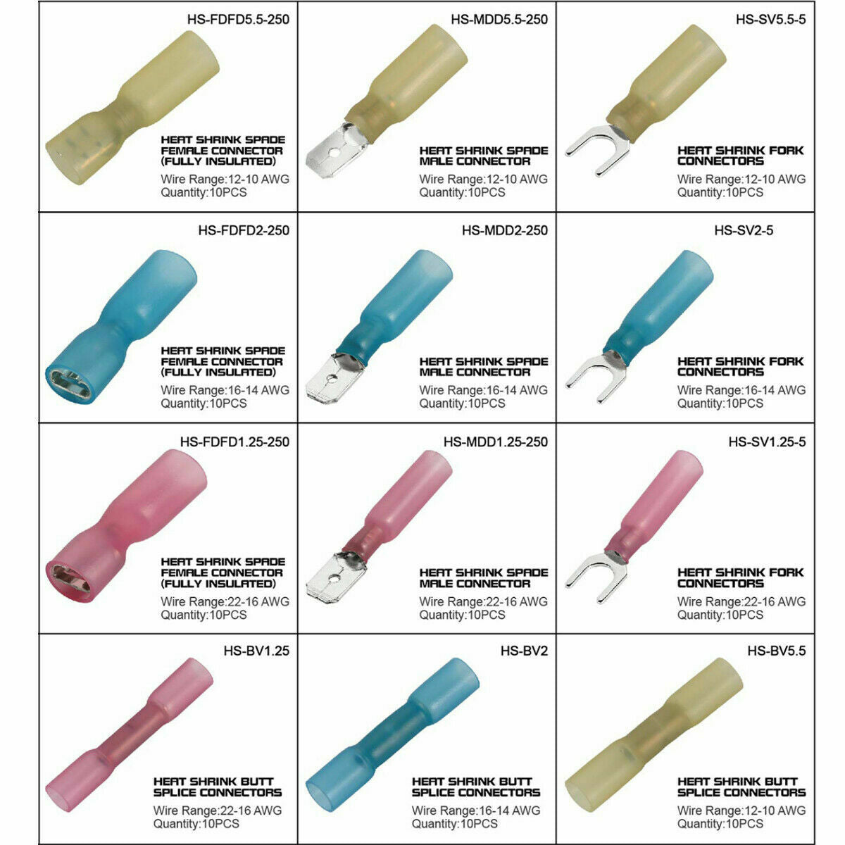 Specification: Quantity: 240PCS Material: PE+Copper Color: Red, Blue, Yellow Type: Heat Shrink Connectors Feature: Made with heat...