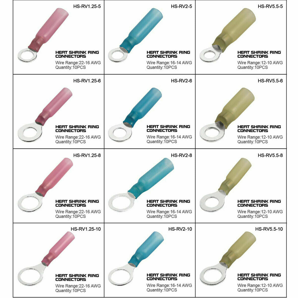 240PCS Heat Shrink Wire Connectors Electrical Crimp Marine Automotive Terminals
