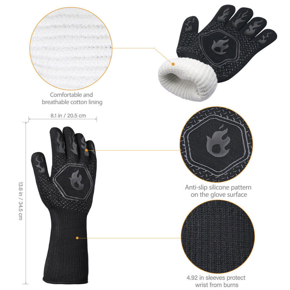 2x Heat Proof Resistant Oven BBQ Gloves Kitchen Cooking Silicone Mitt