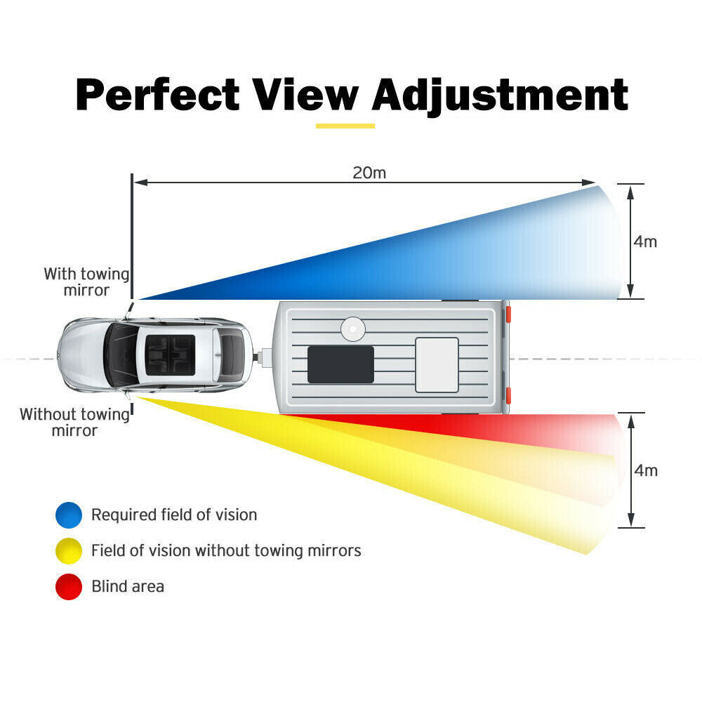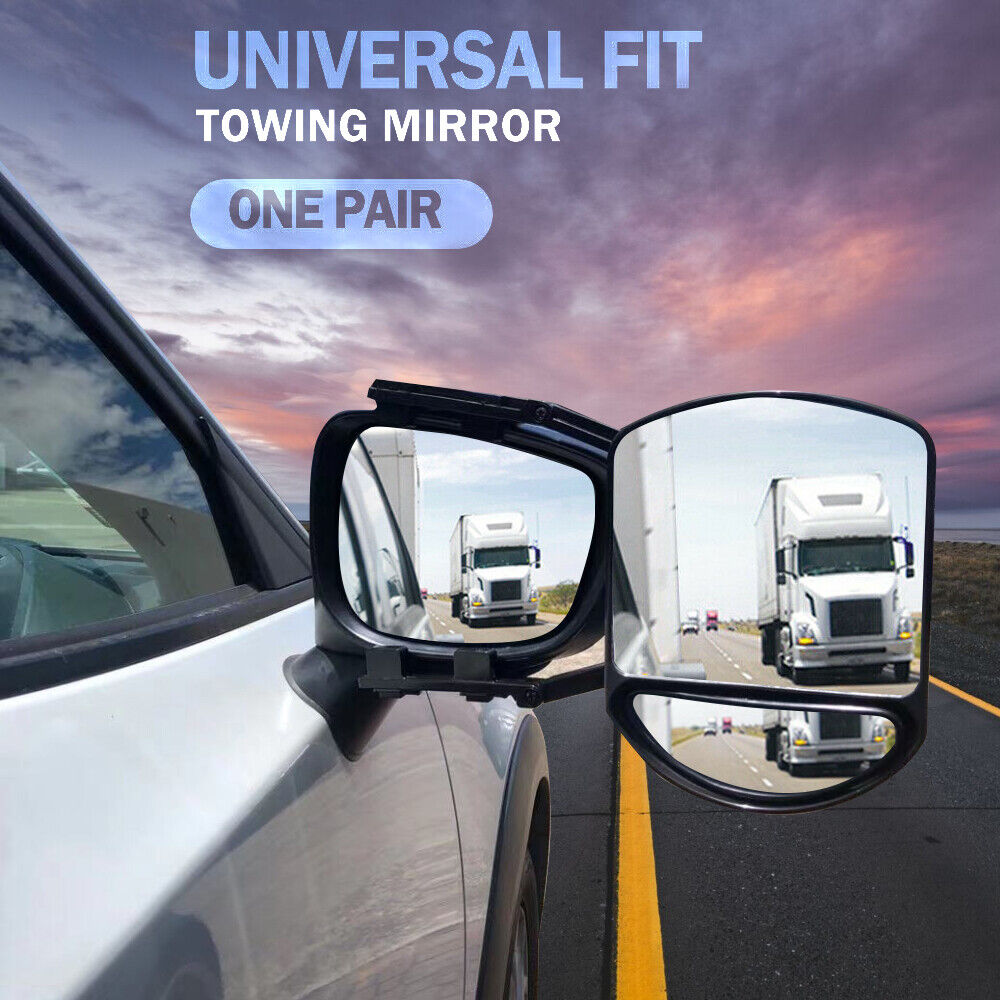 2x Towing Mirrors Pair Clip on Multi Fit Clamp On Towing Caravan 4X4 Trailer