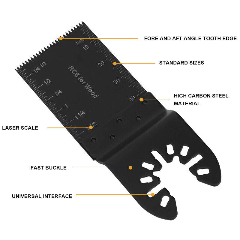 30SAWBLADES Descriptions: Type: Oscillating Saw Blade Color: Black Material: HCS High Carbon Steel Teeth Width: 34mm Full...