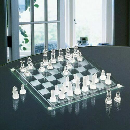 32pcs Glass Chess Set Frosted Board Game Elegant Crystal Queen's Gambit Display