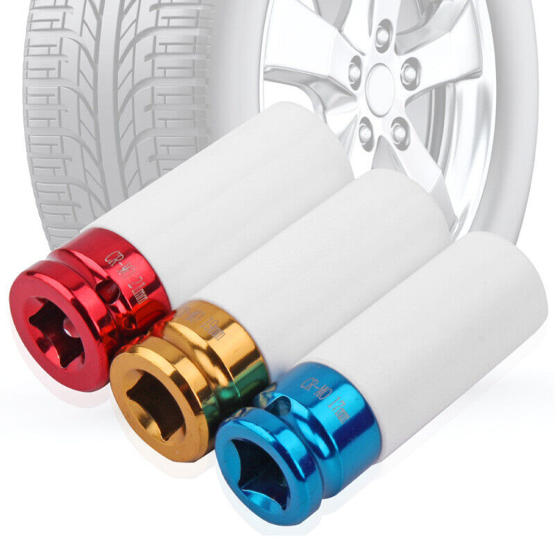 3pc Alloy Wheel Deep Impact Nut Socket Set 17, 19, 21mm 1/2'' with Nylon Sleeve