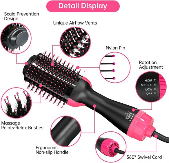 4 in 1 Hot Air Volumizer Stylers Brush Multifunctional Hair Straightener Curler for Salon and Home