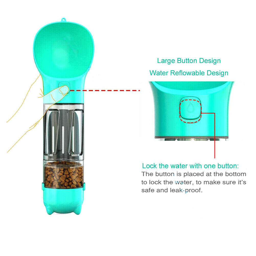 4 in1 Pet Feeder Puppy Dog Cat Water Bottle Cup Travel Pooper Scooper Outdoor