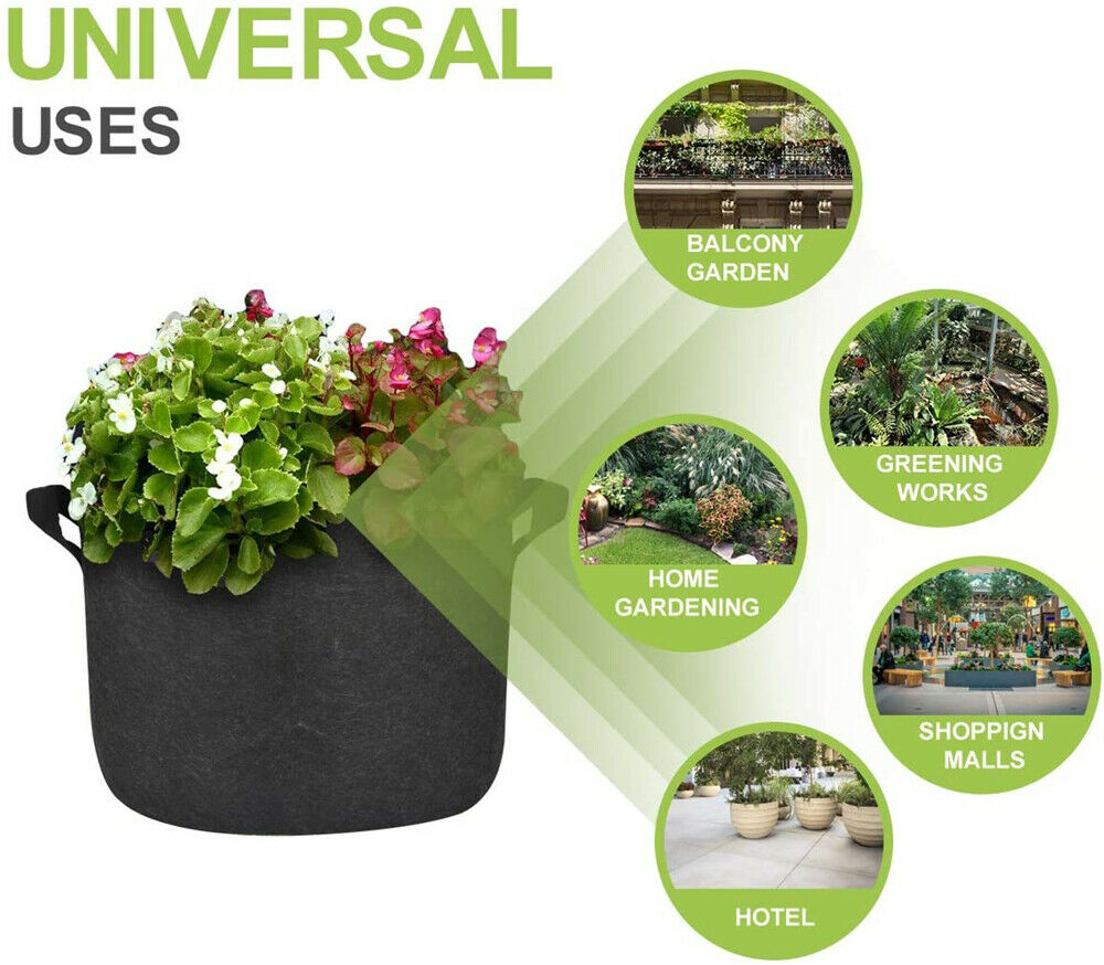 5x  Black Fabric Plant Pot Breathable with Handles 5 Gallon