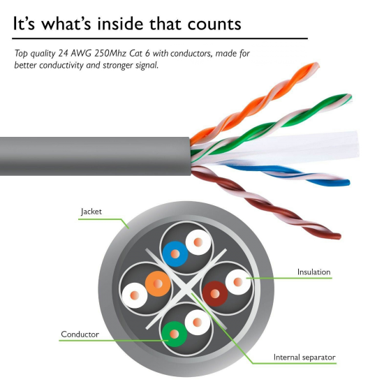 Description: High Performance Cat6, 24 AWG, CM Rated, Ethernet Bulk Cable is an ideal choice for wiring...