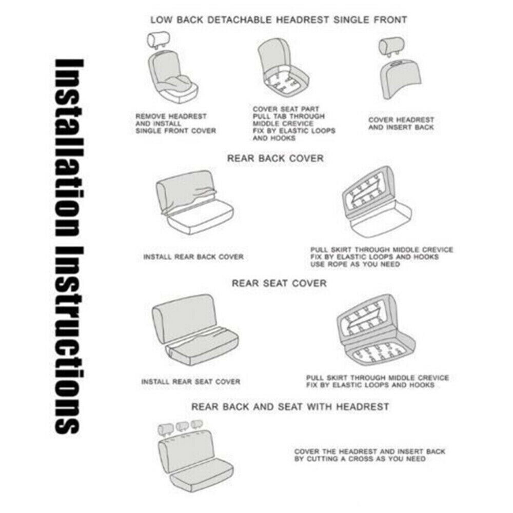 5PCS Universal Car Seat Covers Front Rear Back Head Rest Full Set