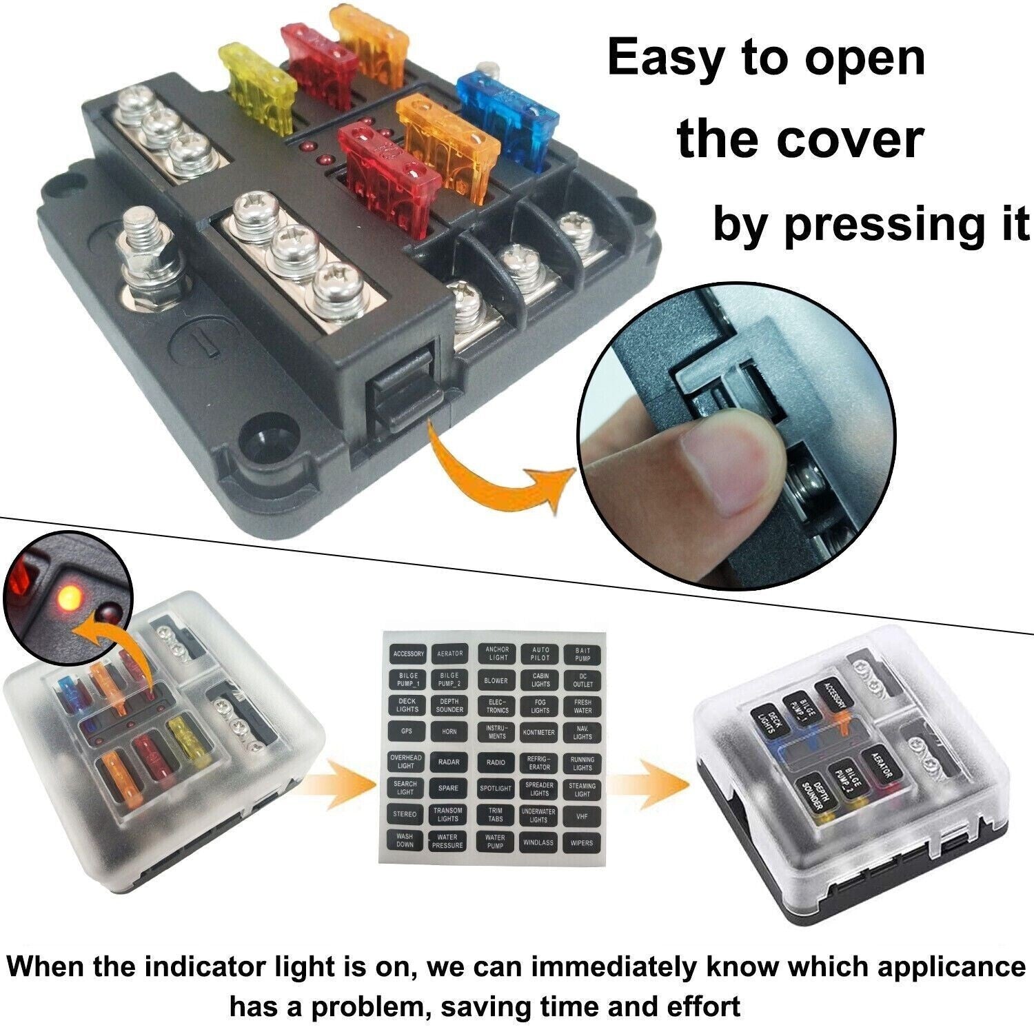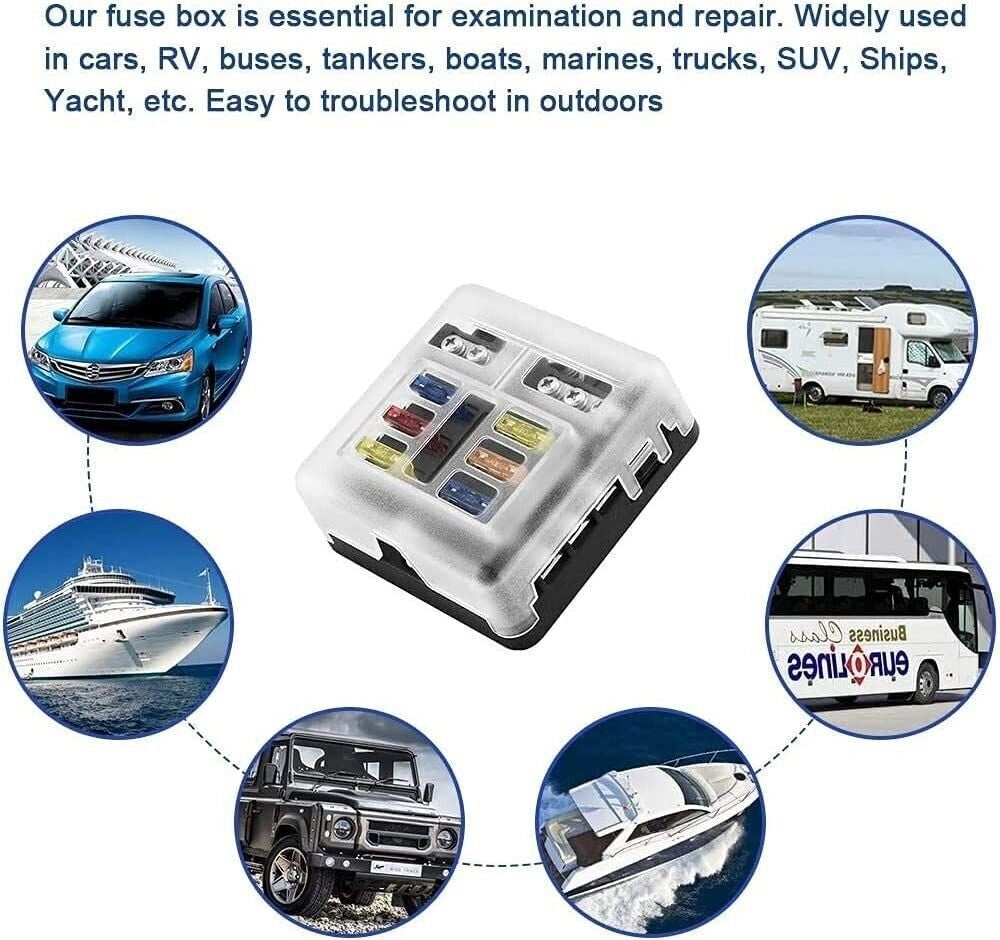 Description: Optimal Conductivity - 6-Circuit fuse block box for ATC/ATO(middle size) fuses; It has a positive and...