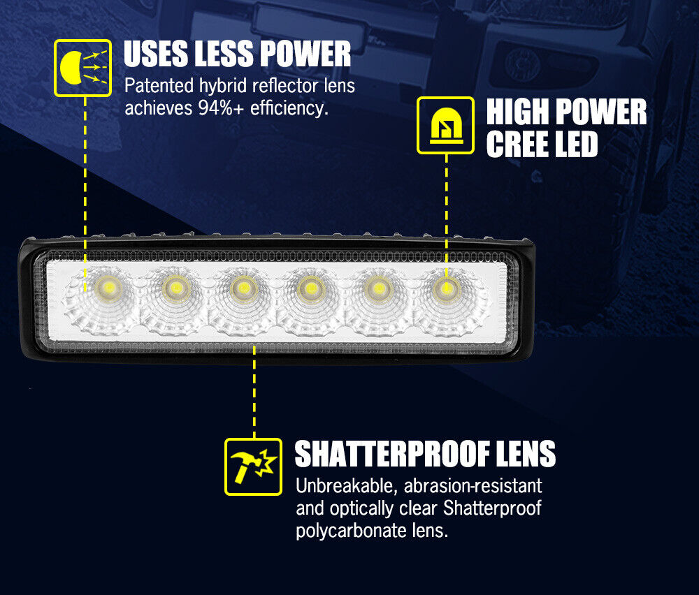 Pair 6Inch Led Work Light Bar Flood Reverse Fog Lights 4WD