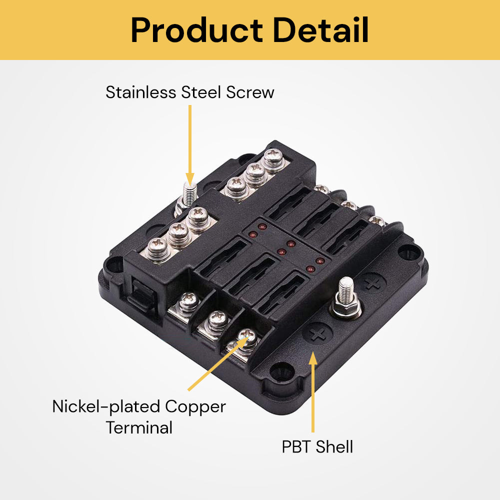 Description: Safe Material: The automotive fuse block adopts PBT anti-flame retardant, high and low temperature environmental protection...
