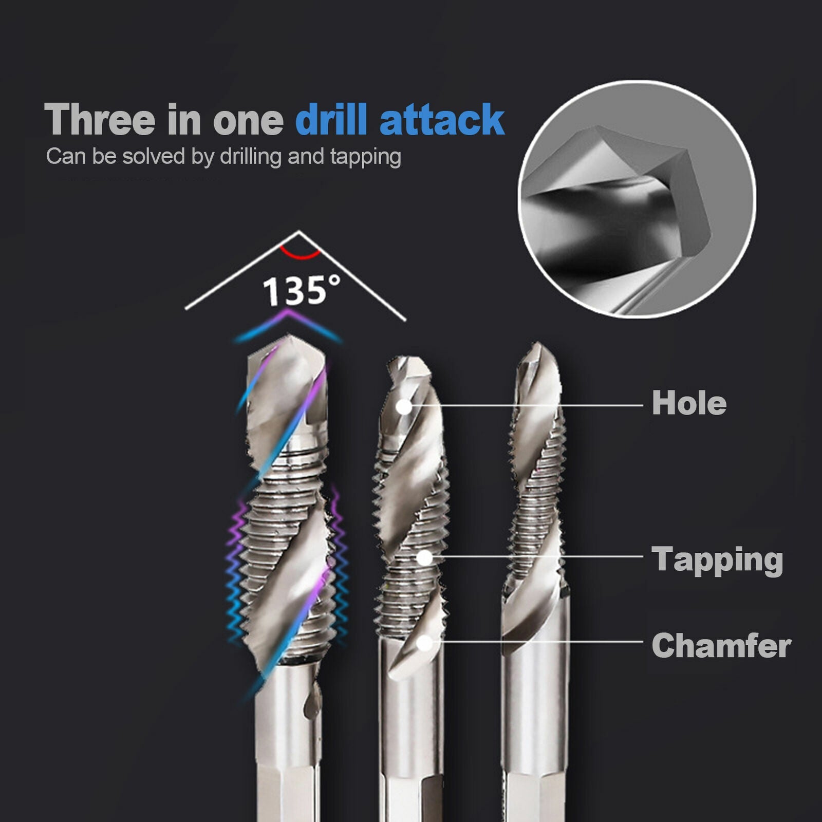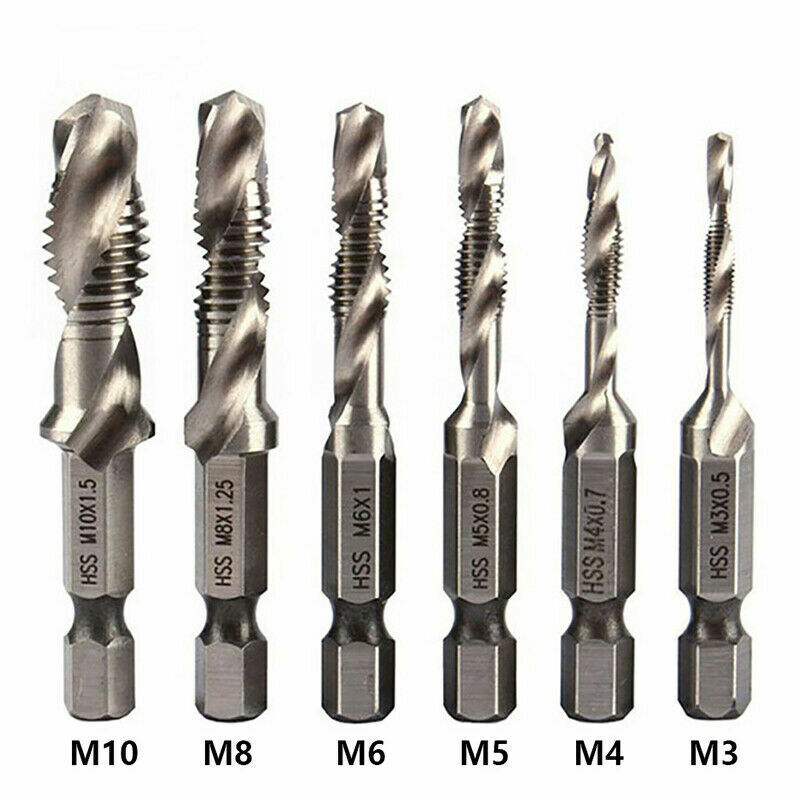 6X HSS Hex Shank Tap Drill Bits Metric Thread Screw Compound Tapping Set Tool AU