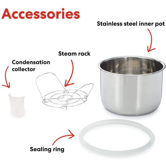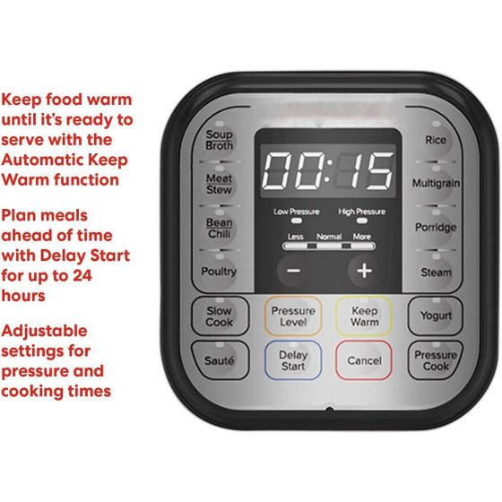 Description: 7-IN-1 FUNCTIONALITY: Pressure cook, slow cook, rice cooker, yogurt maker, steamer, sauté pan and food warmer....