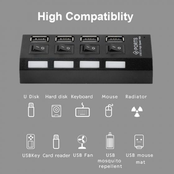 Description: Compatible with your Windows, Mac OS or Linux systems. 1 upstream and 4 downstream USB port....