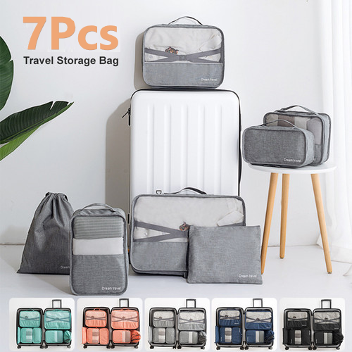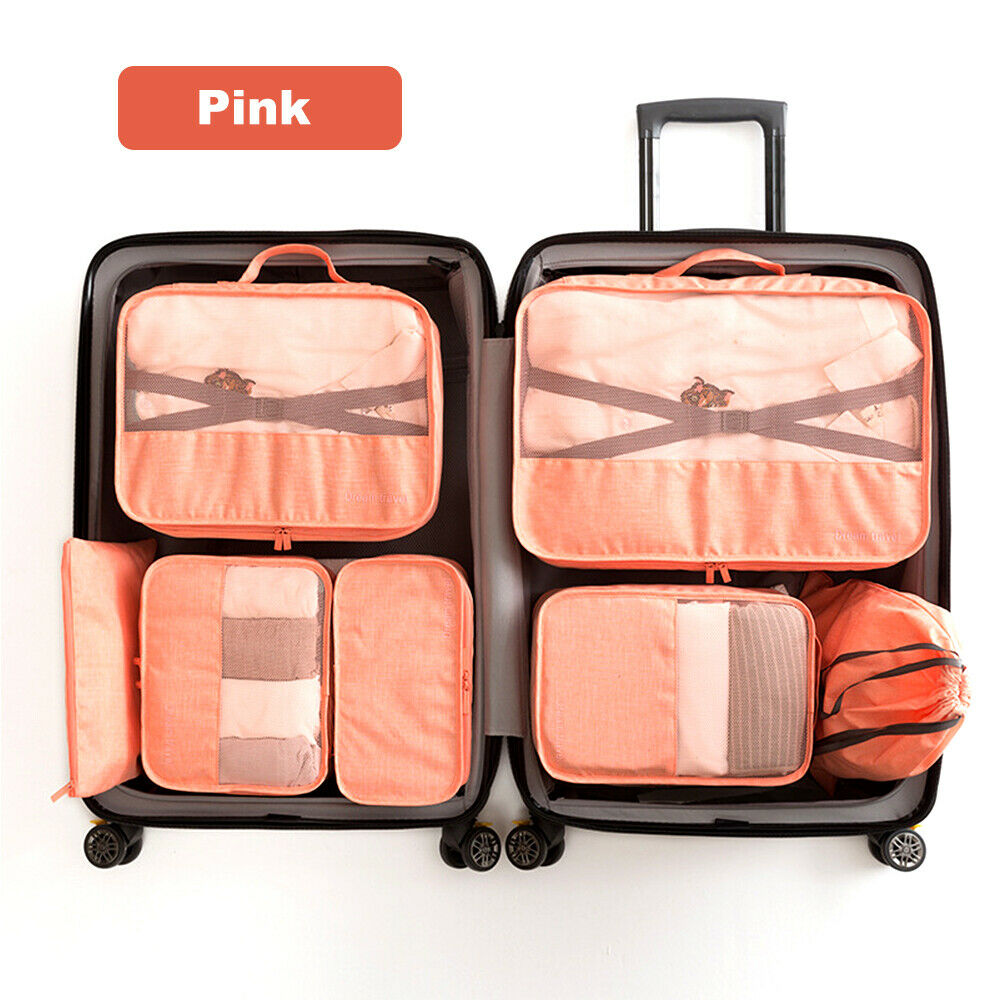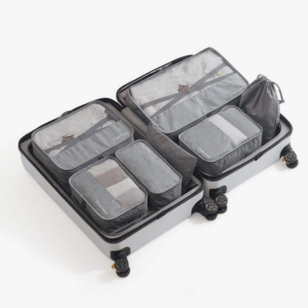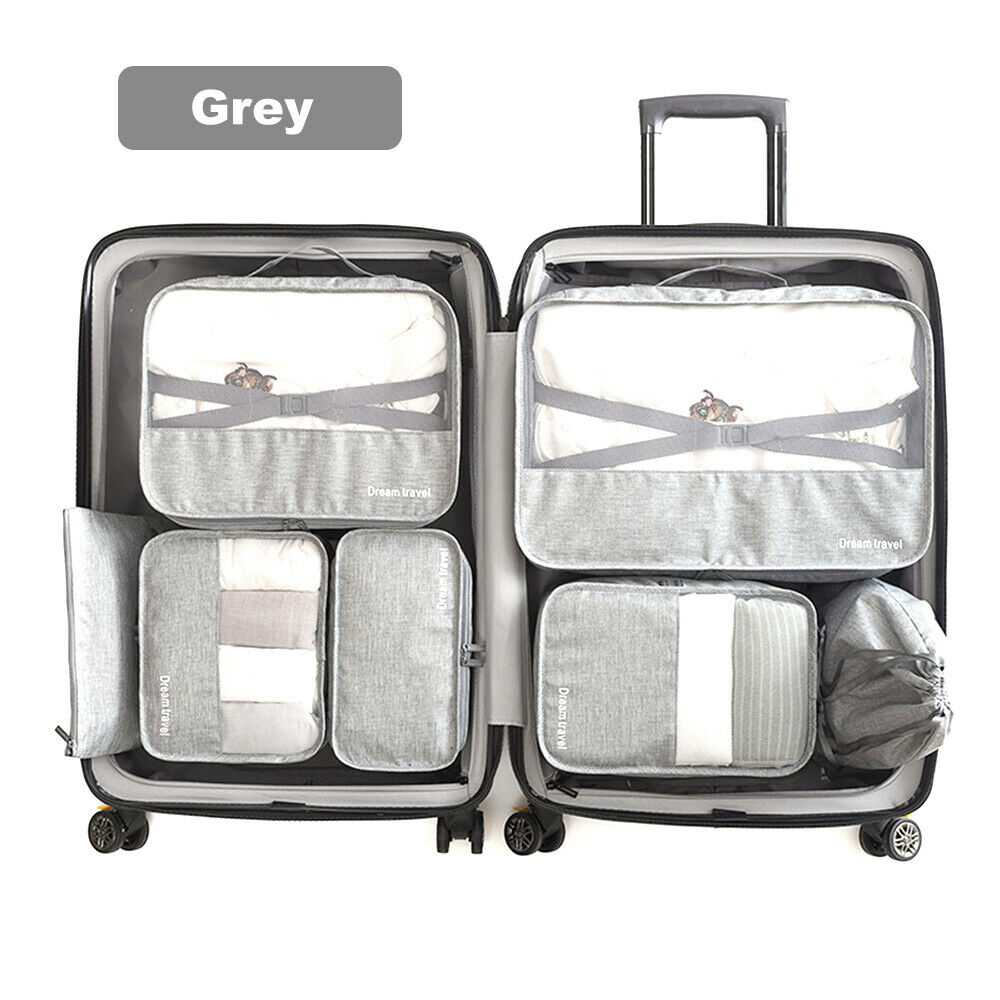 7Pcs Packing Cubes Travel Pouches Luggage Organiser Clothes Suitcase Storage Bag