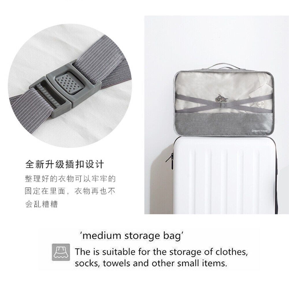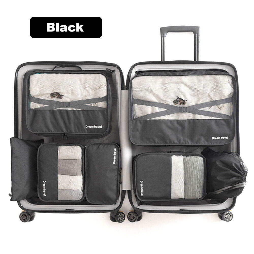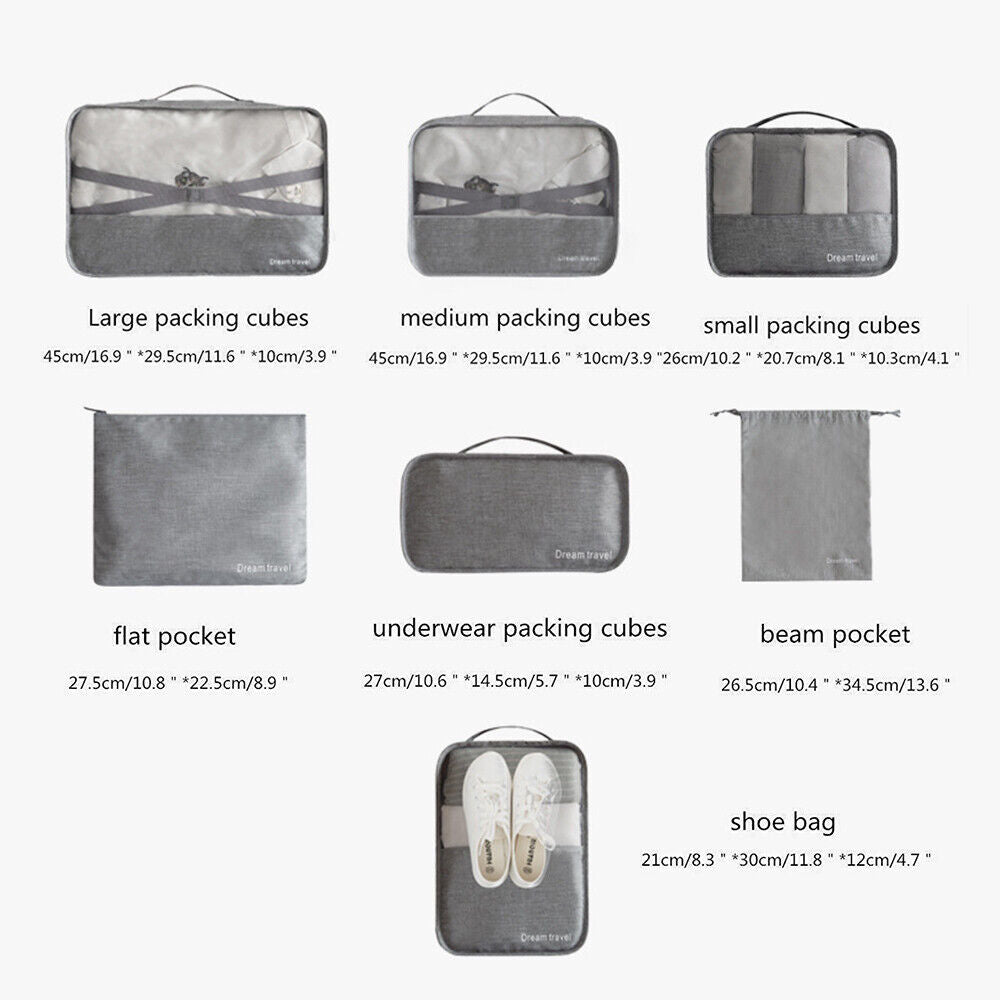 7Pcs Packing Cubes Travel Pouches Luggage Organiser Clothes Suitcase Storage Bag