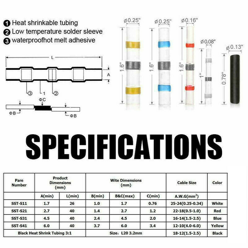 800x Solder Seal Sleeve Heat Shrink Butt Wire Connectors Terminals Waterproof AU