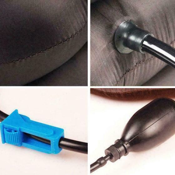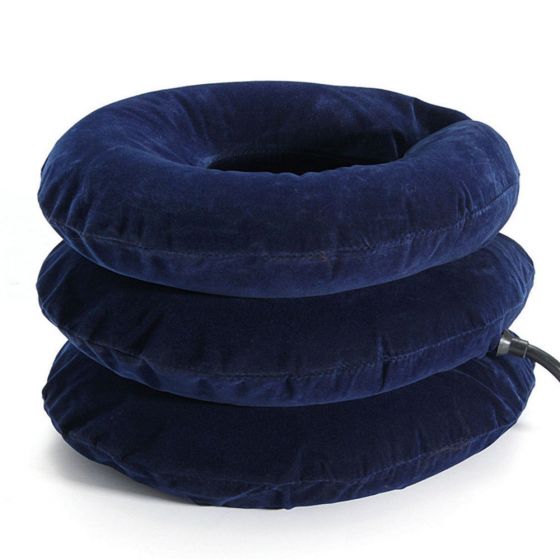 Description: This inflatable neck traction device has a soft head and neck support. Properly position the unit...