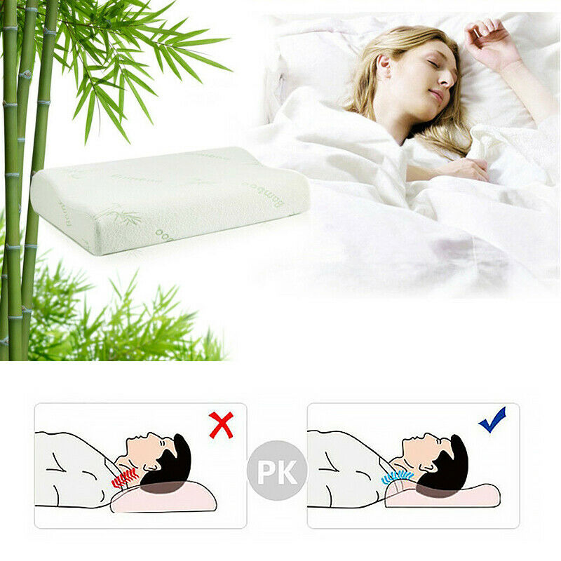 Luxury Soft Contour Bamboo Pillow Memory Foam Fabric Fibre Cover Bed