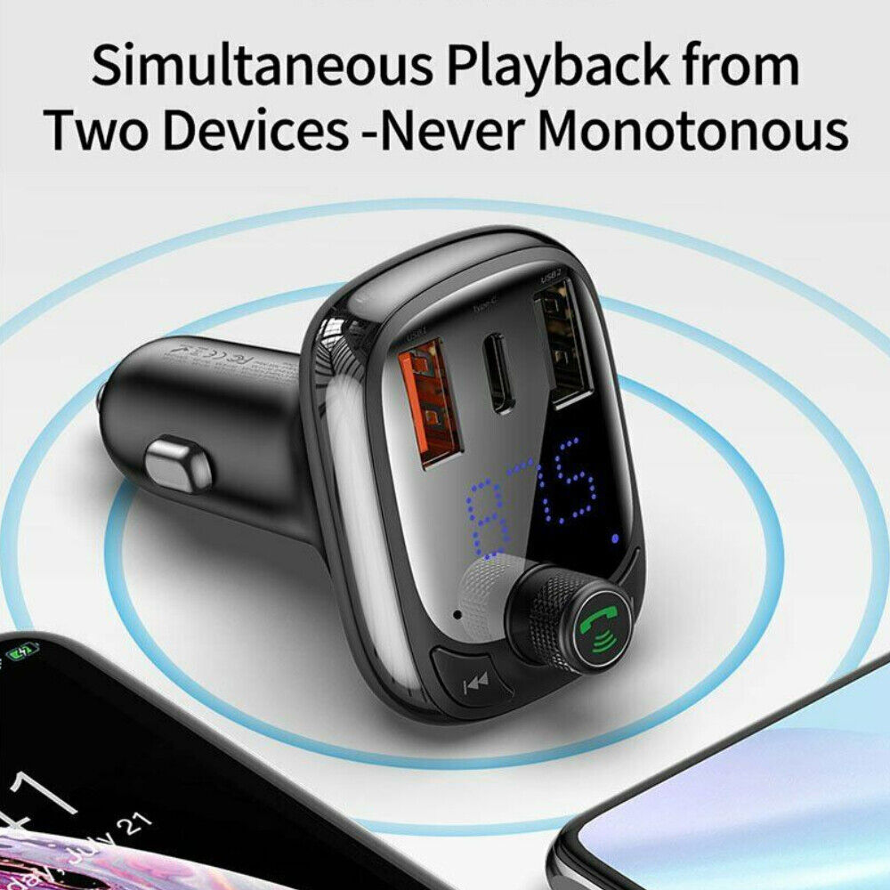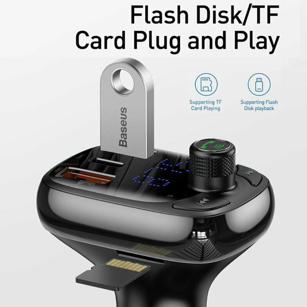 Baseus Bluetooth 5.0 FM Transmitter Car Kit Adapter MP3 Player Dual USB Charger