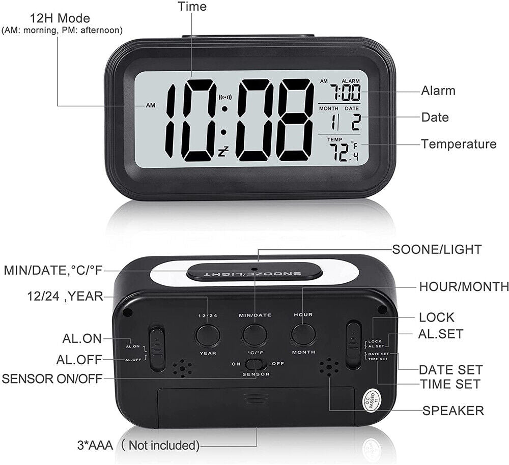 1019CLOCKBK Features: ★Battery digital alarm clock: battery use (3 * AAA 1.5V not included), can be used...