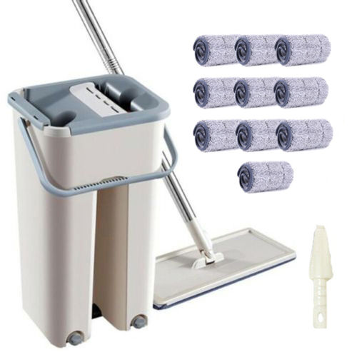 Microfibre Flat Mop and Bucket Floor Cleaner Set with 10 Pads Wet Dry Bucket Mop