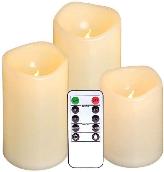 Candle Flickering Warm White Lights Set of 3 Flameless Battery Operated Candles