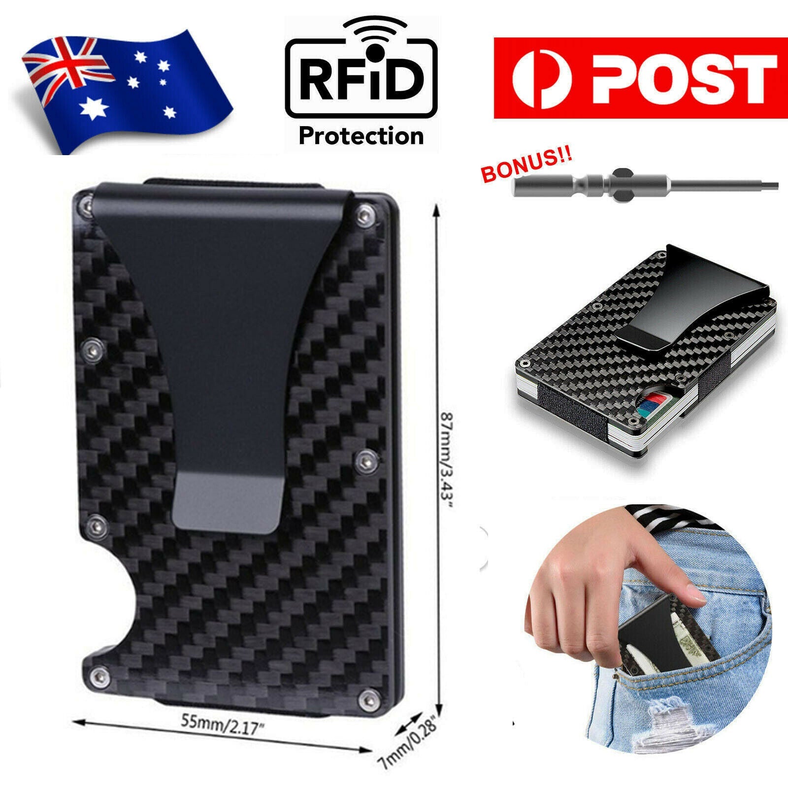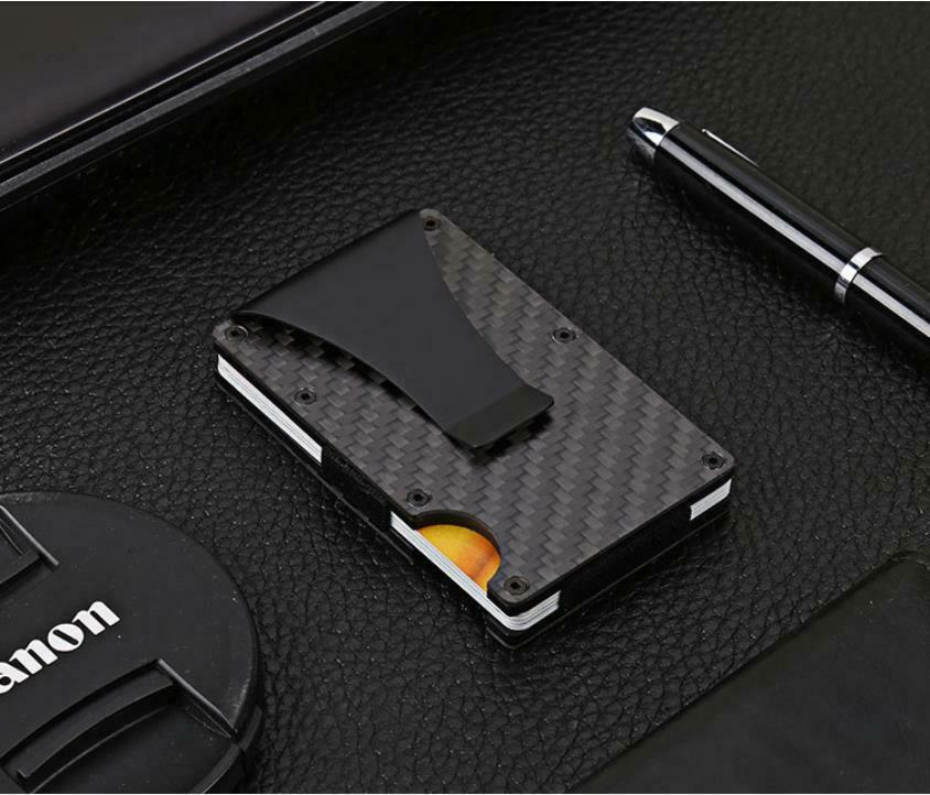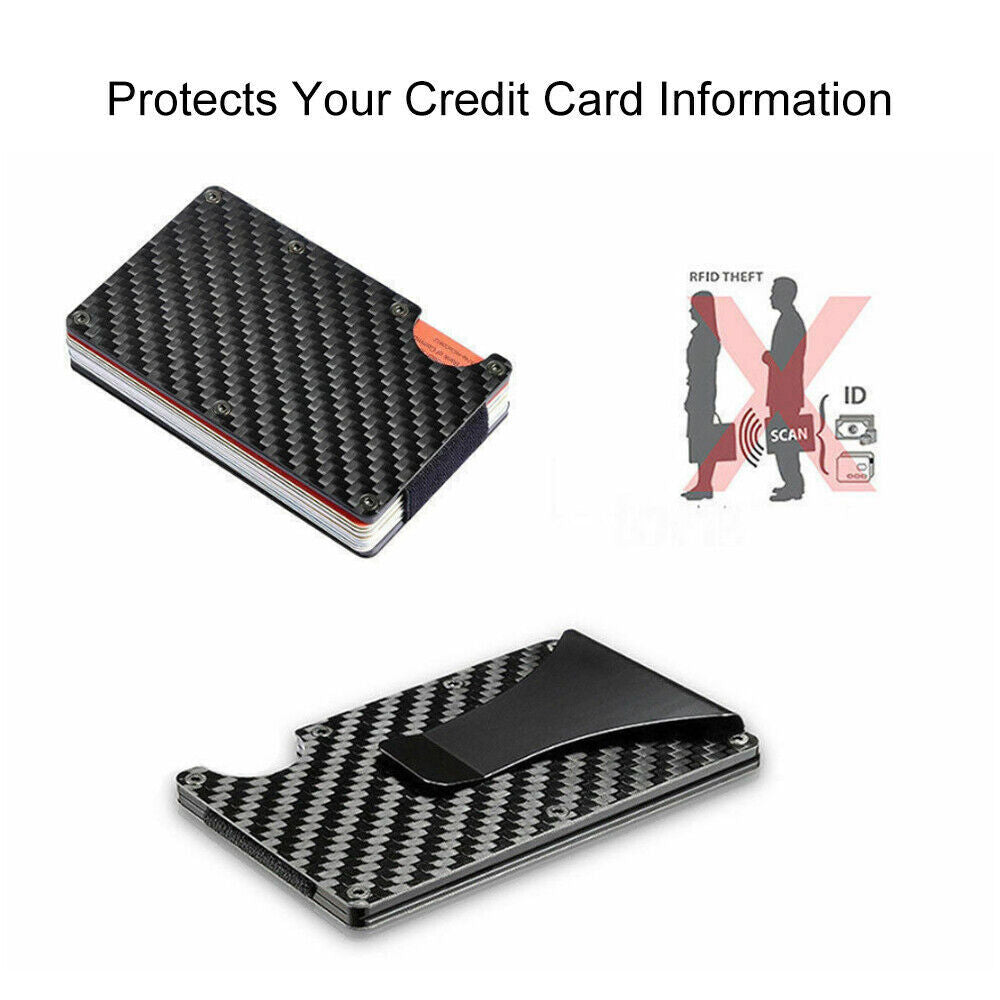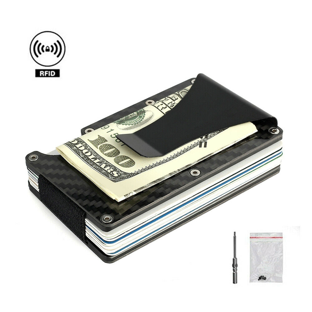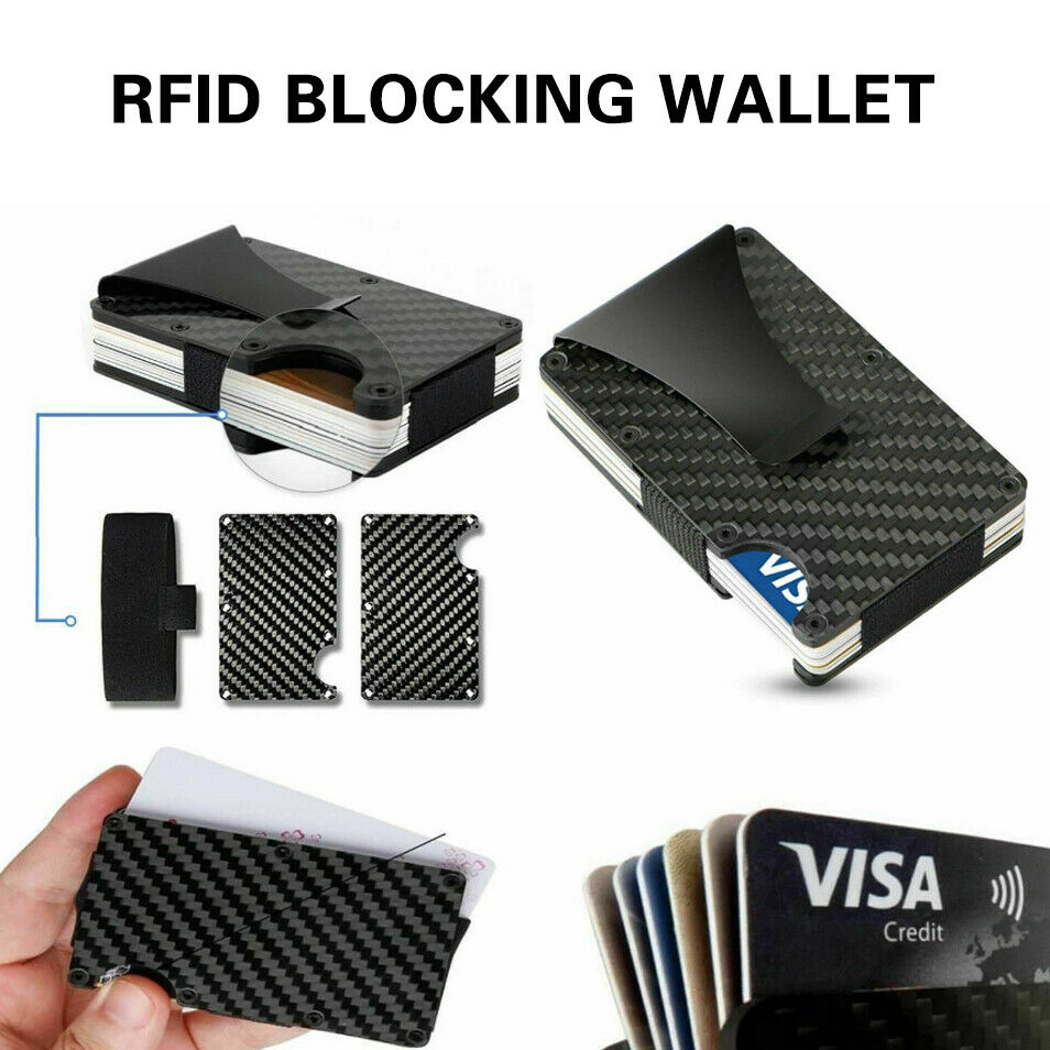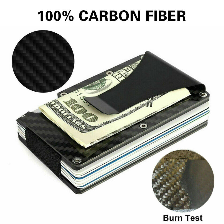 Men Slim Carbon Fiber Credit Card Holder Money Metal Clip RFID Blocking Wallet