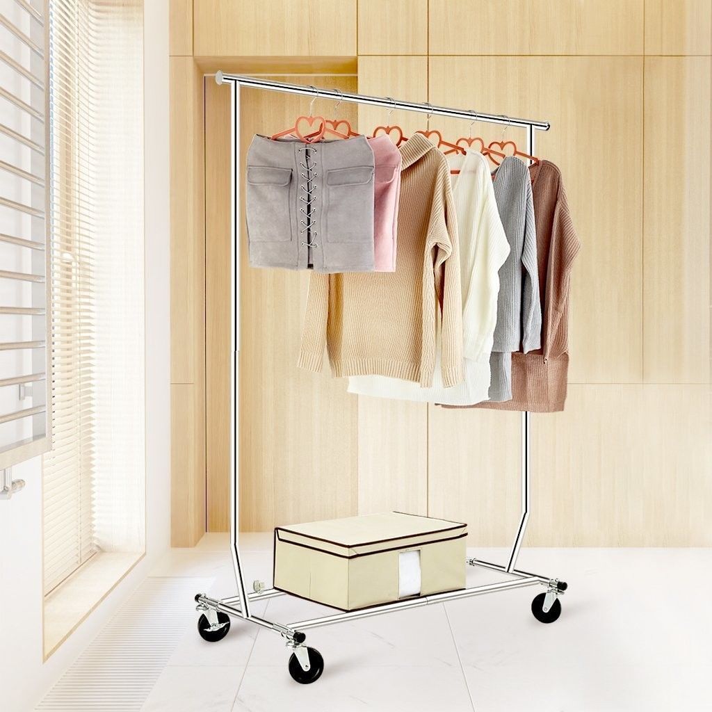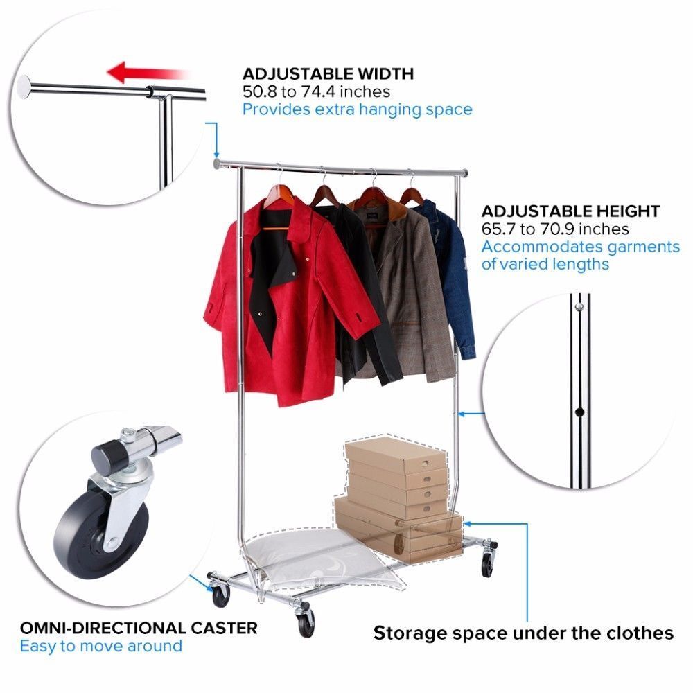 Collapsible Adjustable Single Rail Rolling Garment Cloth Coat Rack Hanger Dryer