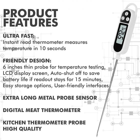 Description: Practical: Measuring temperature of water, drink, meat, soup, bread, fruits, honey, oil, etc. Advantage: Automatic shutdown...