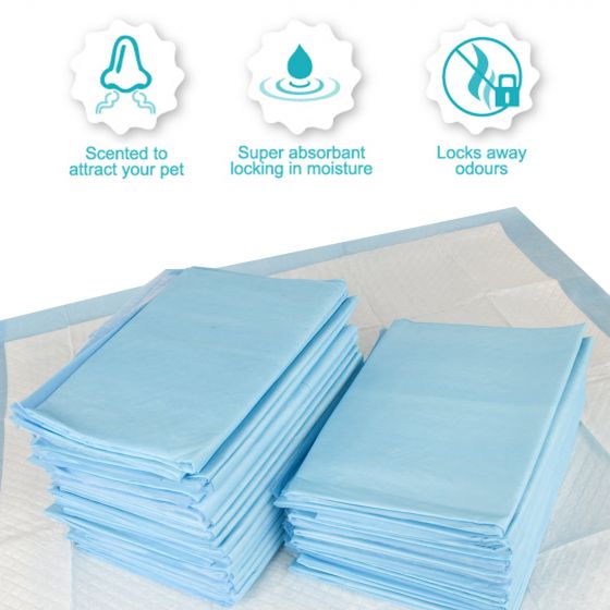 Description: These puppy pads consist of multiple layers of soft fluff pulp, tissue paper and Super Absorbent...