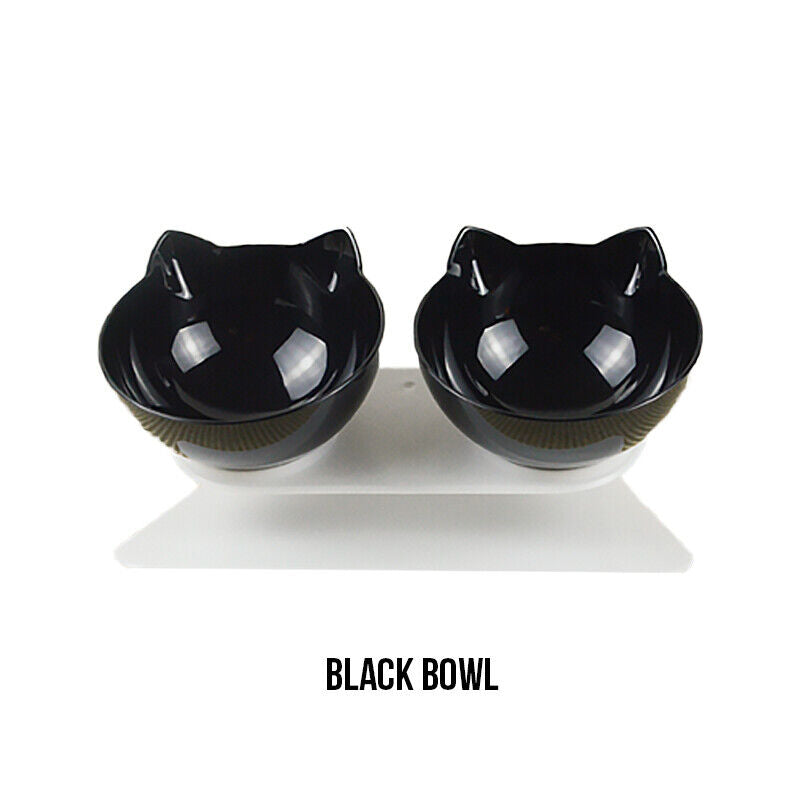 Double Elevated Cat Dog Pet Bowl Feeder Food Water Raised Lifted Stand Bowls