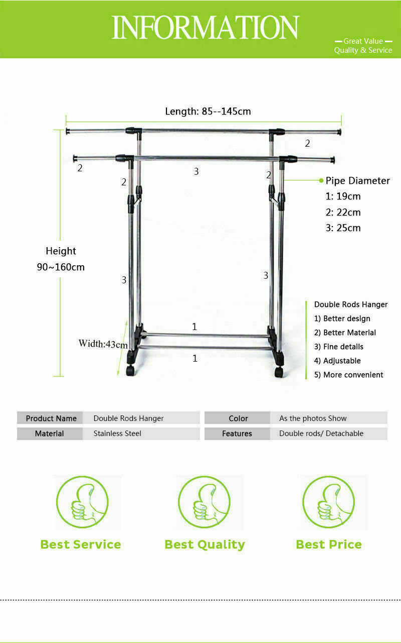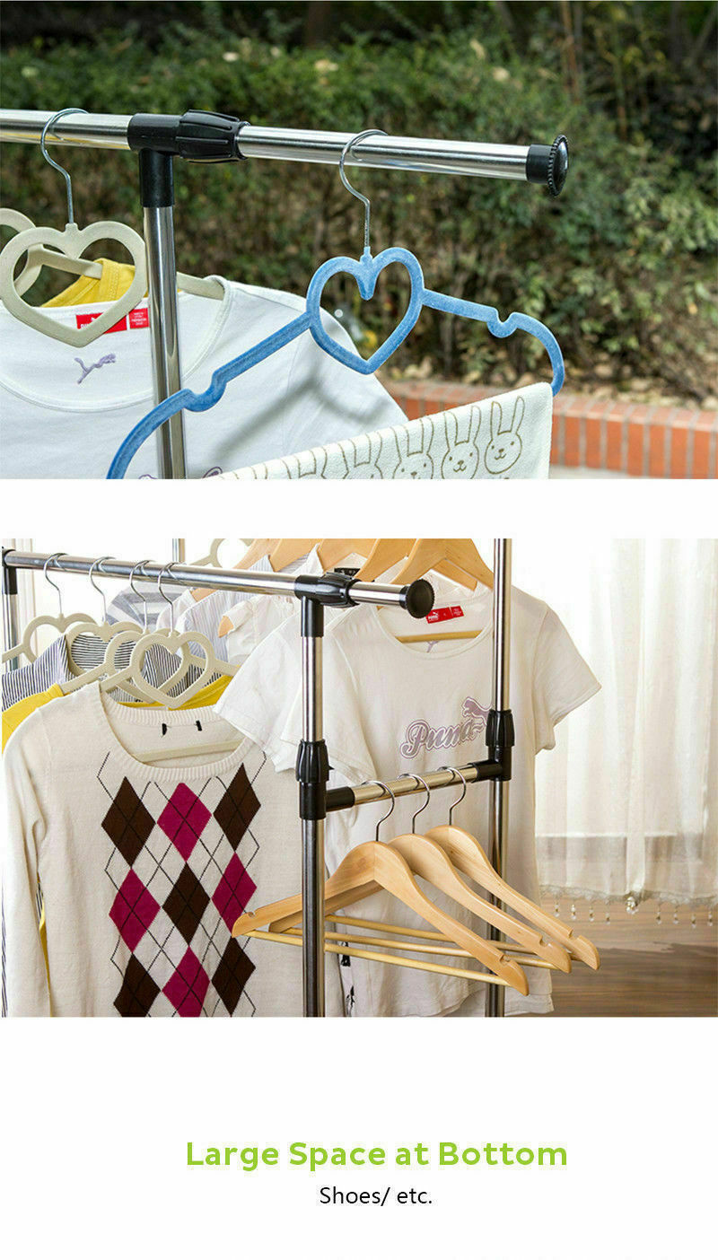 Clothes Rack Double Stainless Shelf Hanger Garment Holder Adjustable Coat