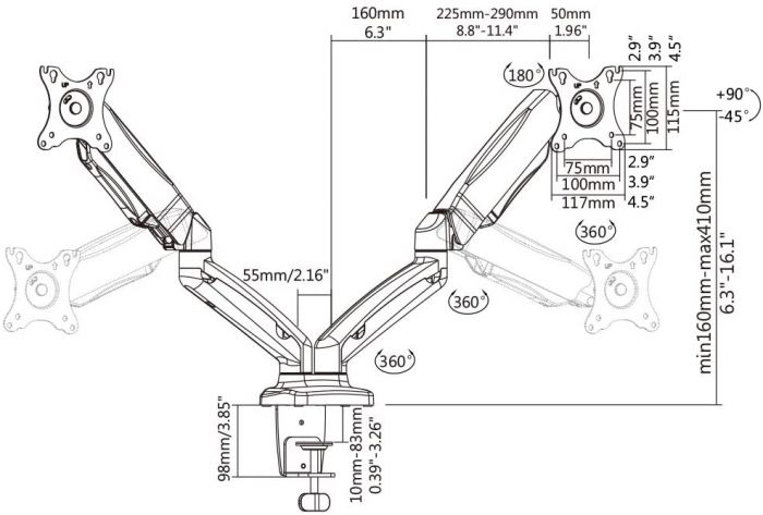 Description: Gas Spring: perfectly counterbalances the weight of your monitor Built-in Spring Tension Gauge: for perfect weight...