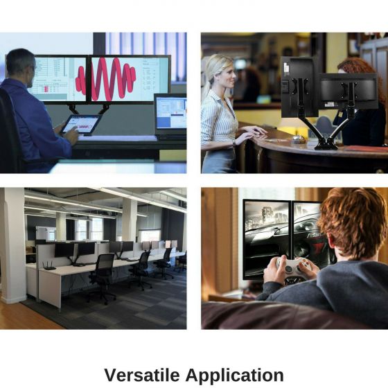 Dual Height Adjustable Monitor Stand Desk Mount for 2 LCD Computer Flat Screens, VESA 75 and 100 Fits 22, 23, 24, 27 Inch