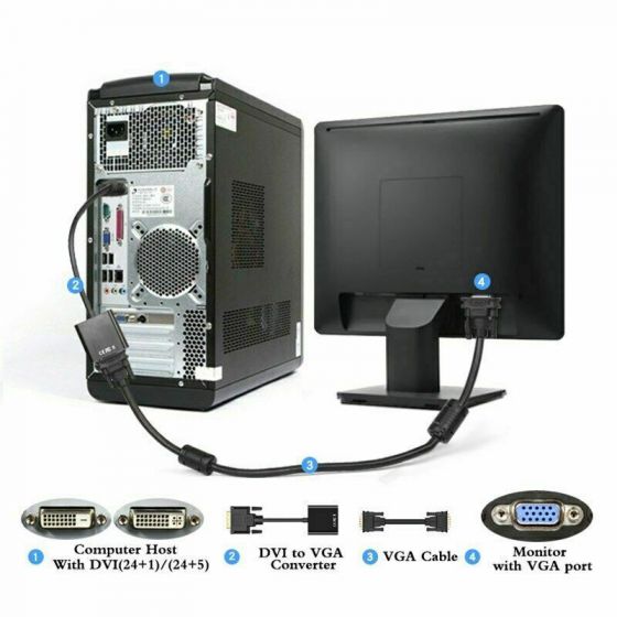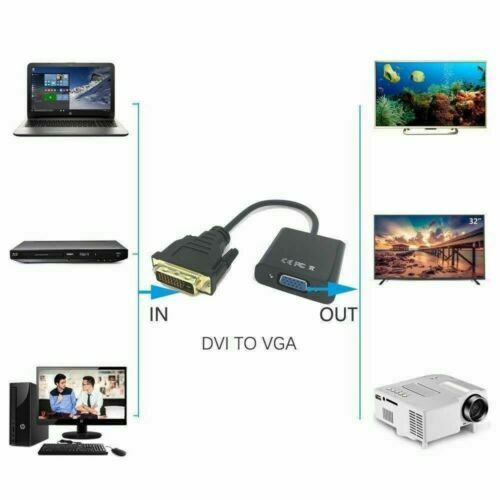 Description: DVI-D to VGA Converter Connects a DVI-compatible system and a DVI-D output to monitors and displays...