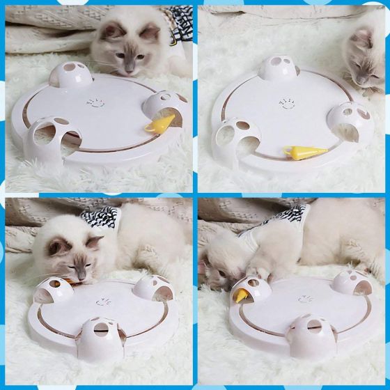Electric Cat Toy Interactive Tracks Roller Mouse Pounce Turntable Play Automatic Rotating Mice Moving Track Catch Toys