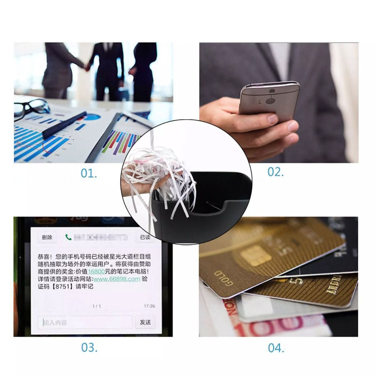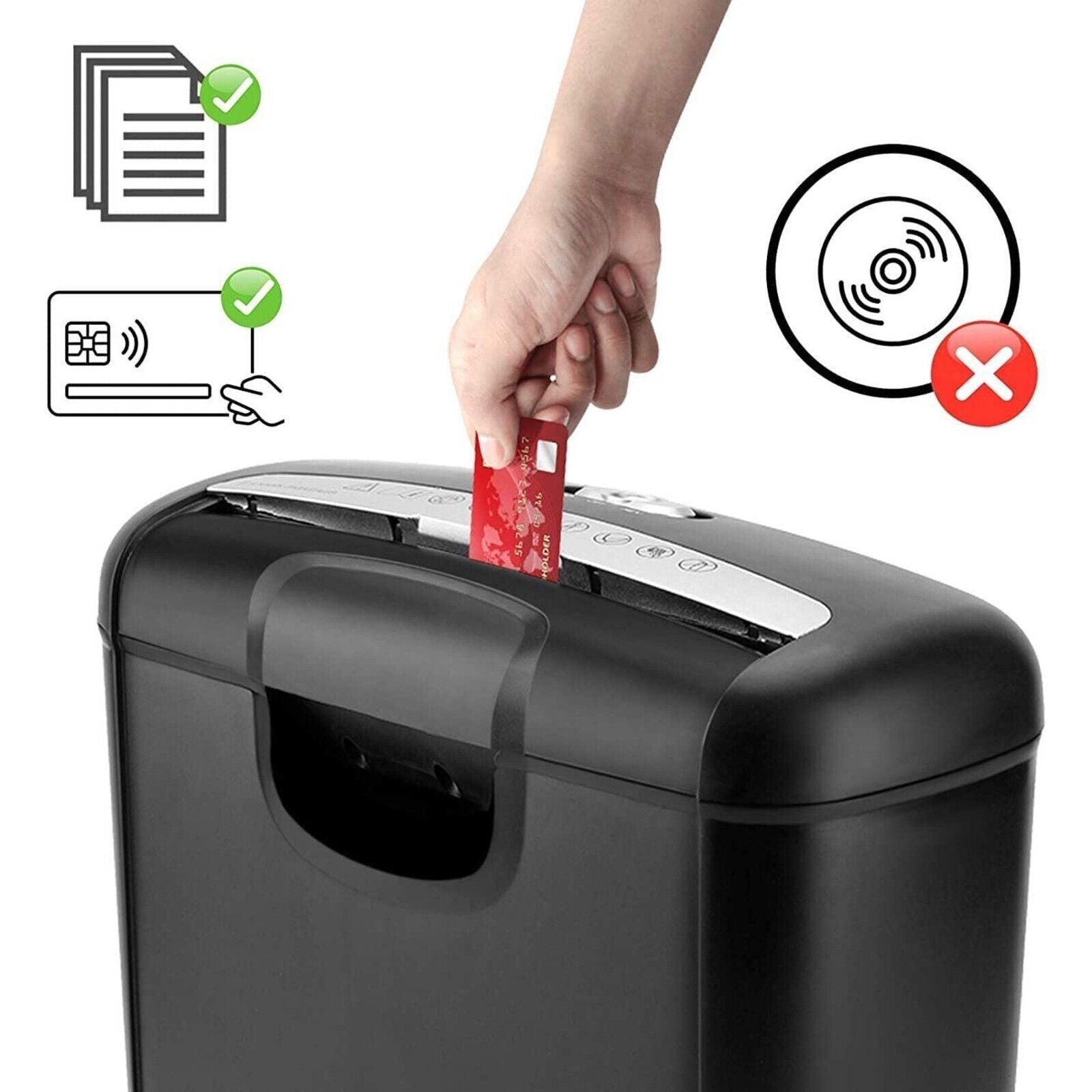 Description: Strip -cut paper shredder with 6-sheet capacity; even can destroys credit card(can Not crush CD disks)...